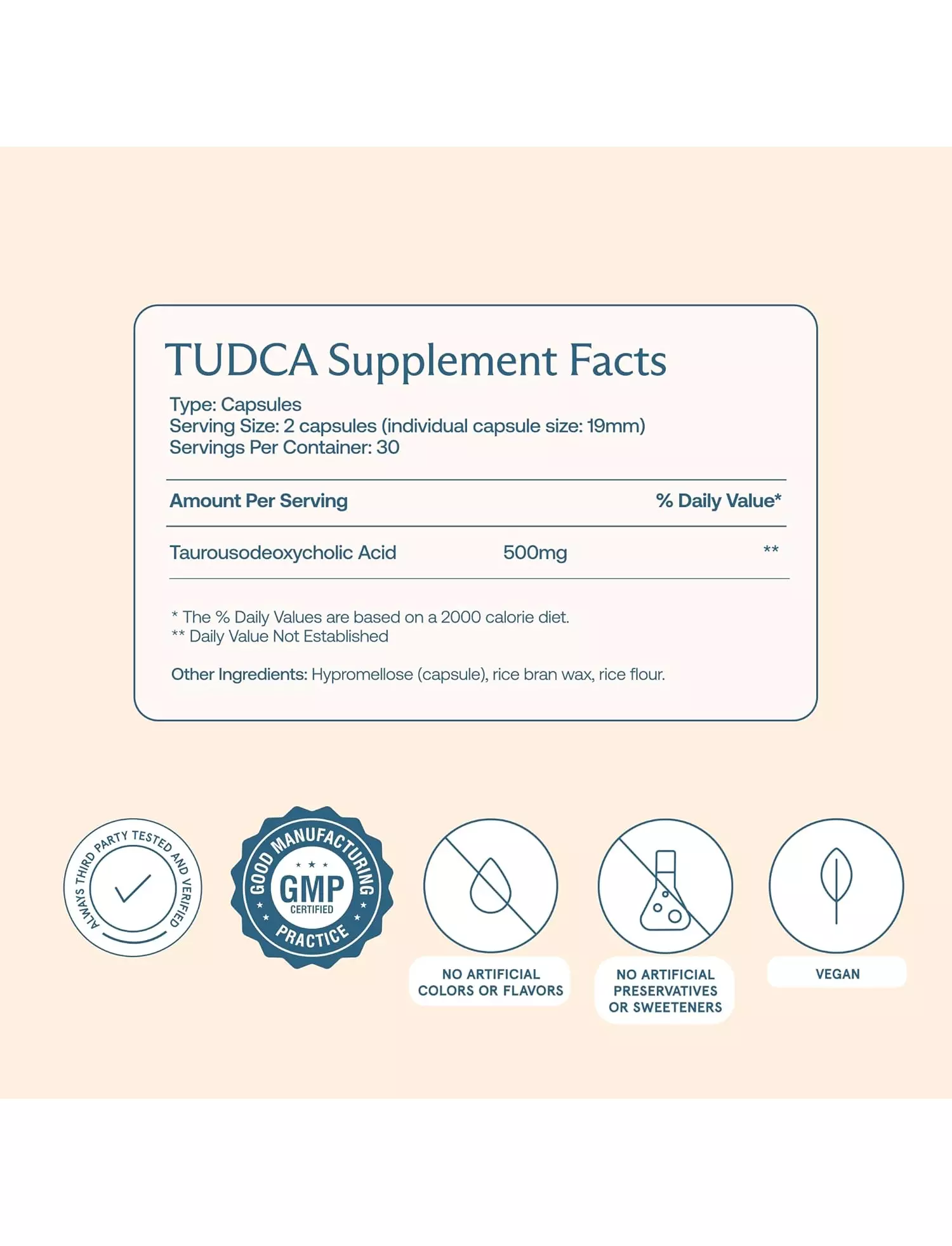 - Добавки TUDCA зазвичай вважаються безпечними, якщо їх приймати у рекомендованих кількостях. Деякі зазнавали діареї при прийомі більше 1500 мг на день, що не рекомендується. Інших побічних ефектів TUDCA немає.