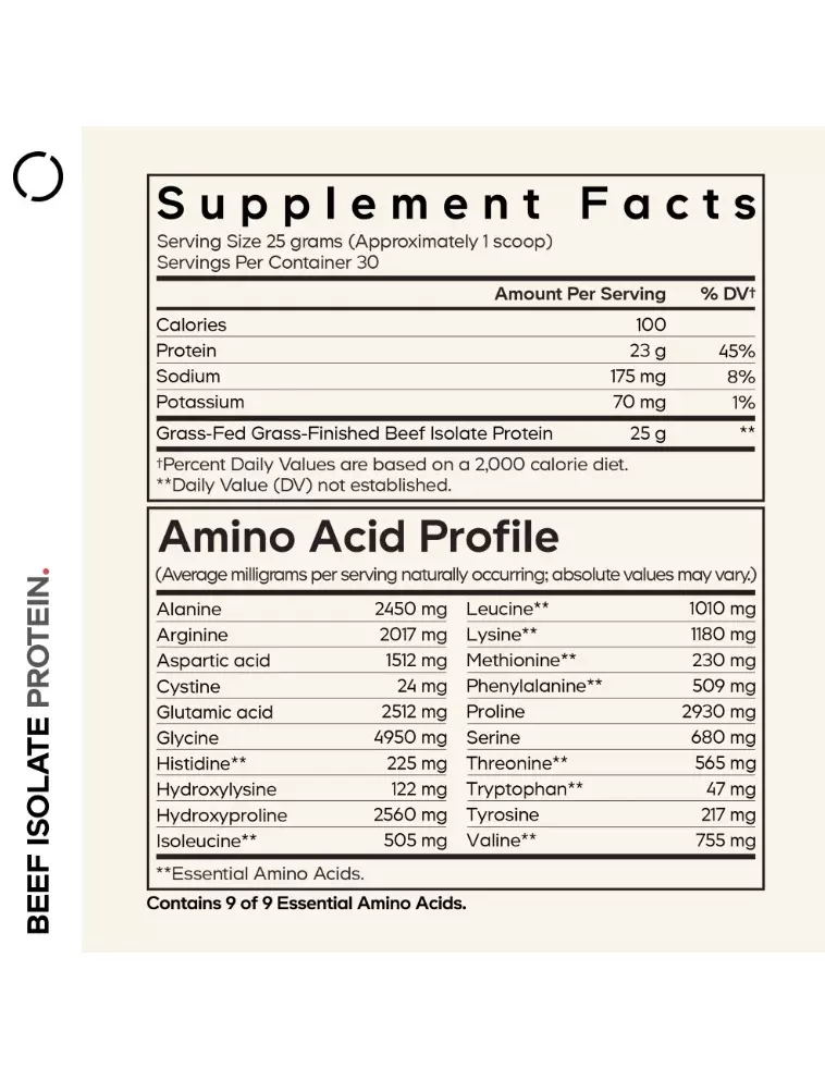 протеїнова добавка Codeage Beef Isolate Protein Powder містить білок із яловичини трав'яної відгодівлі у вигляді порошку без смакових добавок та цукру, забезпечуючи 25 г білка на порцію.Повний профіль амінокислот: