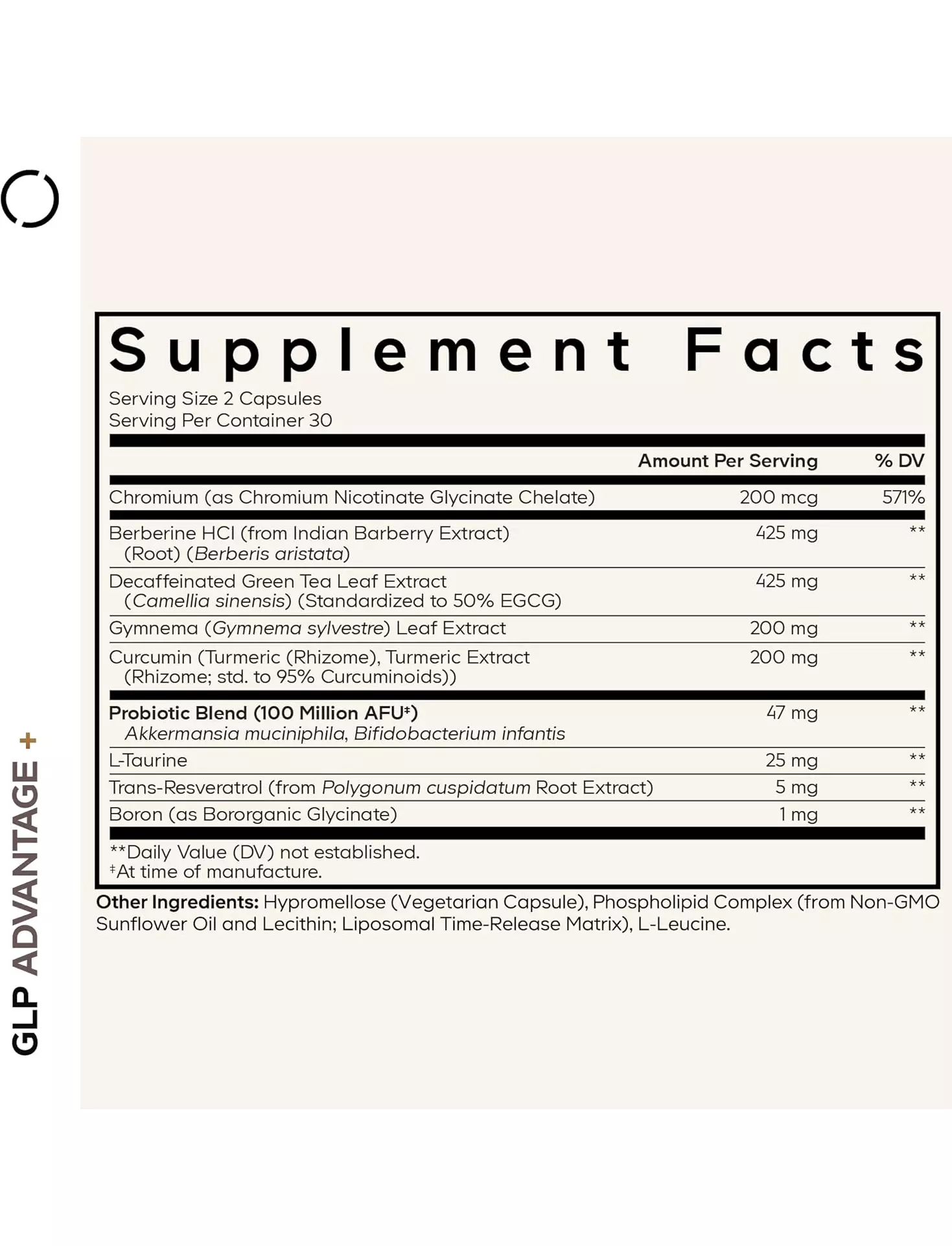 Формула Advantage розроблена для підтримки здоров'я обміну речовин та контролю ваги, потенційного підвищення активності ГПП-1 та метаболізму глюкози, а також для сприяння збалансованому мікробіому кишківника.