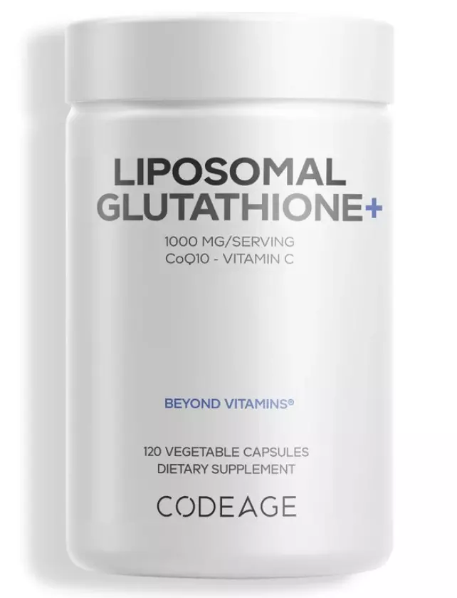 Codeage Liposomal Glutathione+ містить 1000 мг відновленого L-глутатіону на порцію в поєднанні з вітаміном С та CoQ10, а також використовує ліпосомальну систему доставки. Ця формула розроблена для підтримки споживання антиоксидантів і часто включається до оздоровчих процедур, спрямованих на здорове старіння. Продукт веганський, не містить ГМО та молочних продуктів, сої та глютену. Запас на 2 місяці.