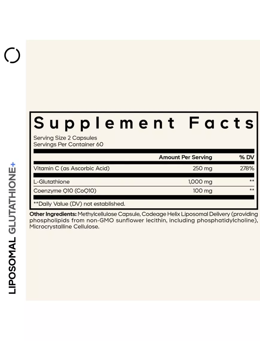 Формула Codeage Liposomal Glutathione також містить коензим Q10 (CoQ10), що сприяє щоденному вживанню багатокомпонентної добавки.