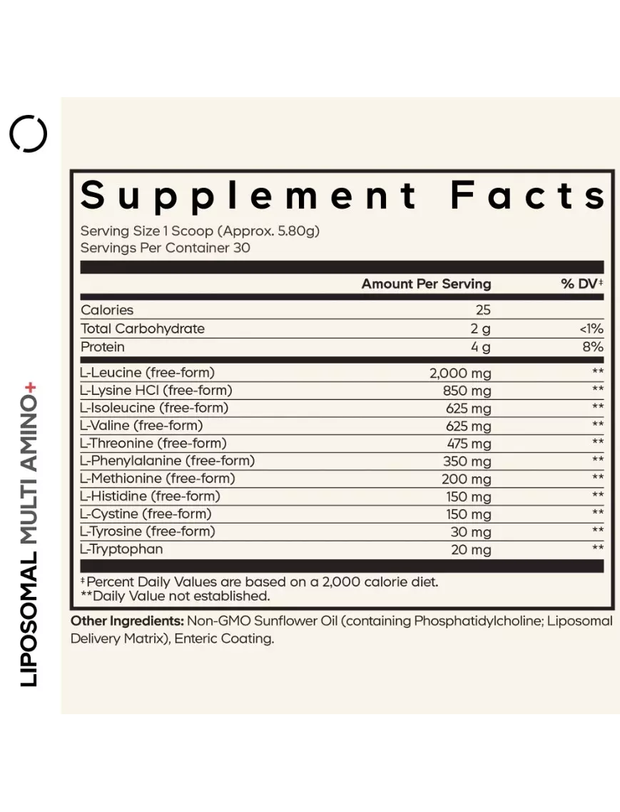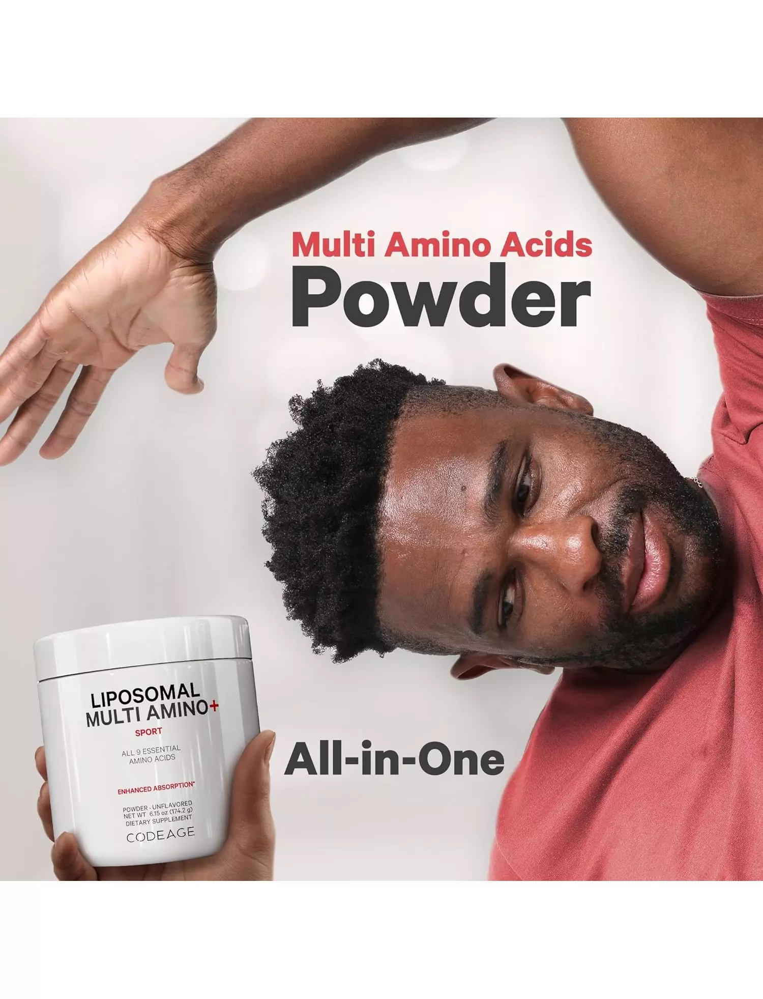 Порошкова добавка Codeage Liposomal Multi Amino+ містить усі дев'ять незамінних амінокислот та забезпечує ліпосомальну доставку. Ця рослинна протеїнова добавка є комплексною амінокислотною формулою, яка одночасно є добавкою BCAA (амінокислоти з розгалуженим ланцюгом) і добавкою EAA (незамінні амінокислоти). EAA — це всі 9 незамінних амінокислот, які не виробляються організмом і повинні надходити з їжею або харчовими добавками.