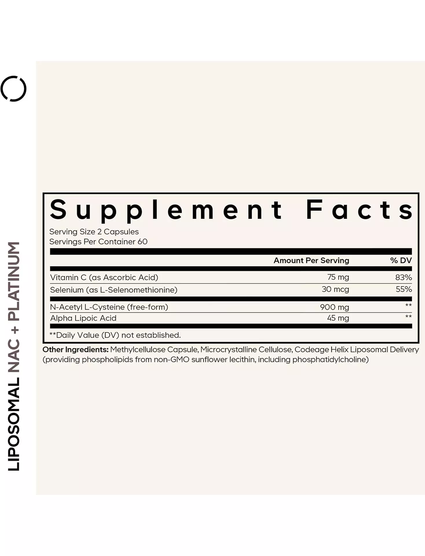 CodeAge Liposomal NAC+ Platinum / Ліпосомальний NAC N-ацетил L-цистеїн 120 капсул