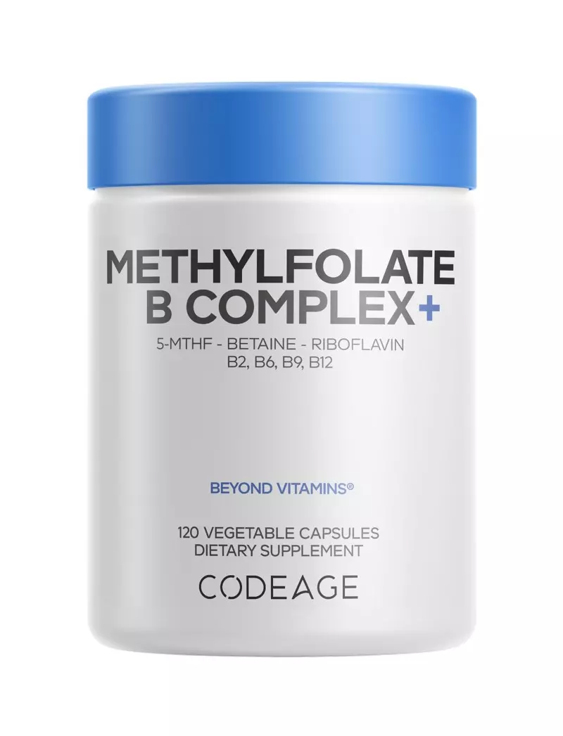 Codeage Mmethylfolate B Complex+ пропонує потужну суміш фолієвої кислоти у вигляді 5-MTHF, рибофлавіну, вітаміну Б2, вітаміну Б6, вітаміну Б12 у метильованій формі та бетаїну для високоефективної формули комплексу вітамінів групи B. Запас на 2 місяці.