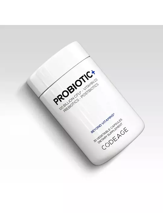 Пробіотик 100 млрд КУО від CodeAge — це потужна формула пробіотиків, пребіотиків і постбіотиків, створена для щоденної підтримки мікрофлори кишечника, імунної системи та загального самопочуття. У кожній порції — 100 мільярдів КУО з 12 клінічно досліджених штамів, доповнених пребіотичною клітковиною, кверцетином, вітаміном Д3 і цинком.