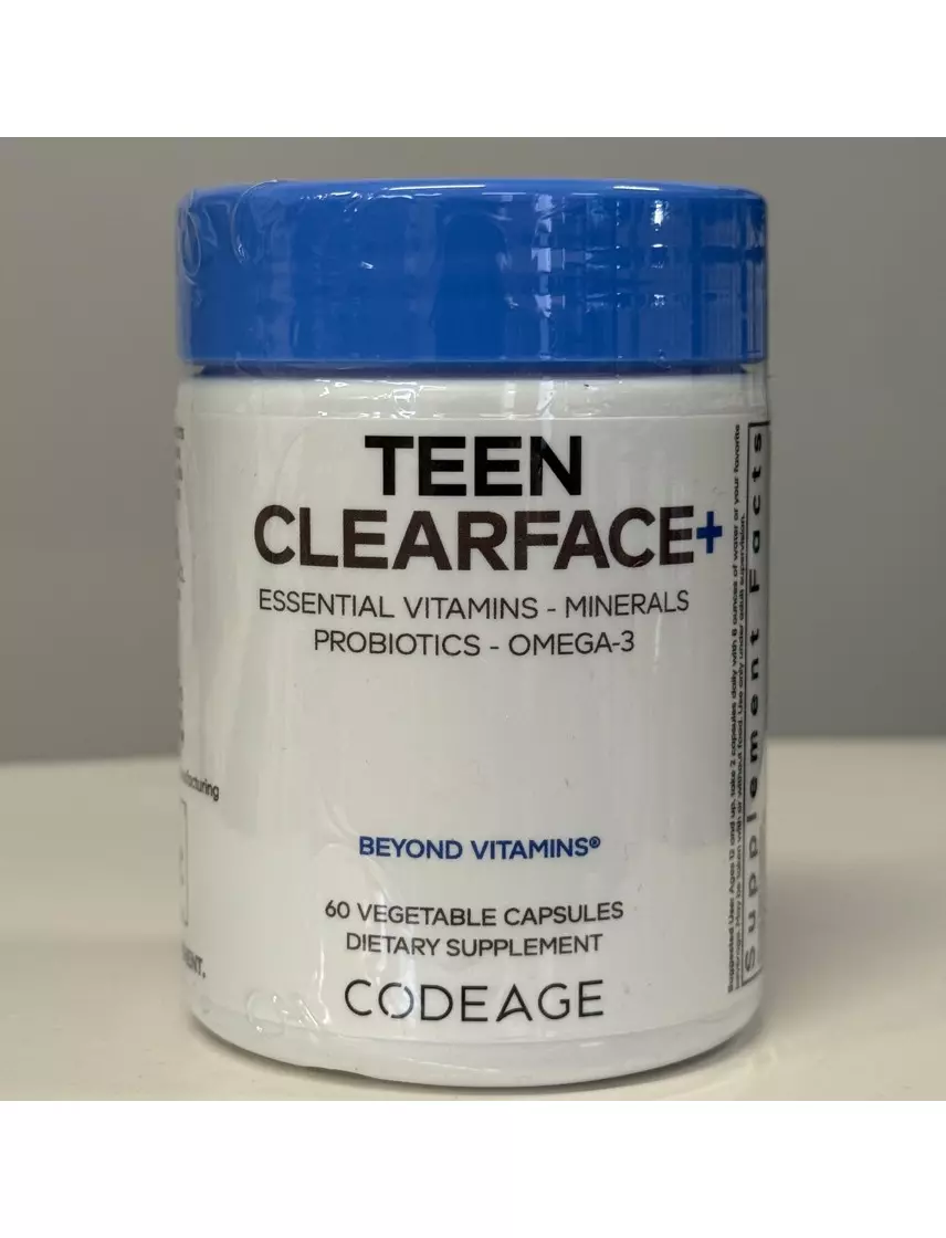Codeage Teen Clearface+ пропонує вдосконалену добавку для шкіри для підлітків віком 12–18 років. Ця комплексна добавка для підлітків, що поєднує в собі необхідні вітаміни, мінерали, пробіотики, веганські омега-3, фруктові порошки, амінокислоти та екстракти трав в одній зручній формулі, призначена для підтримки чистої та здорової шкіри як хлопчиків, так і дівчаток-підлітків.