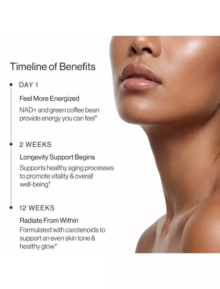 Ця формула використовує відновлювальний підхід до поповнення та підтримки рівня NAD+ за допомогою комбінації додаткових інгредієнтів, які сприяють цьому процесу.