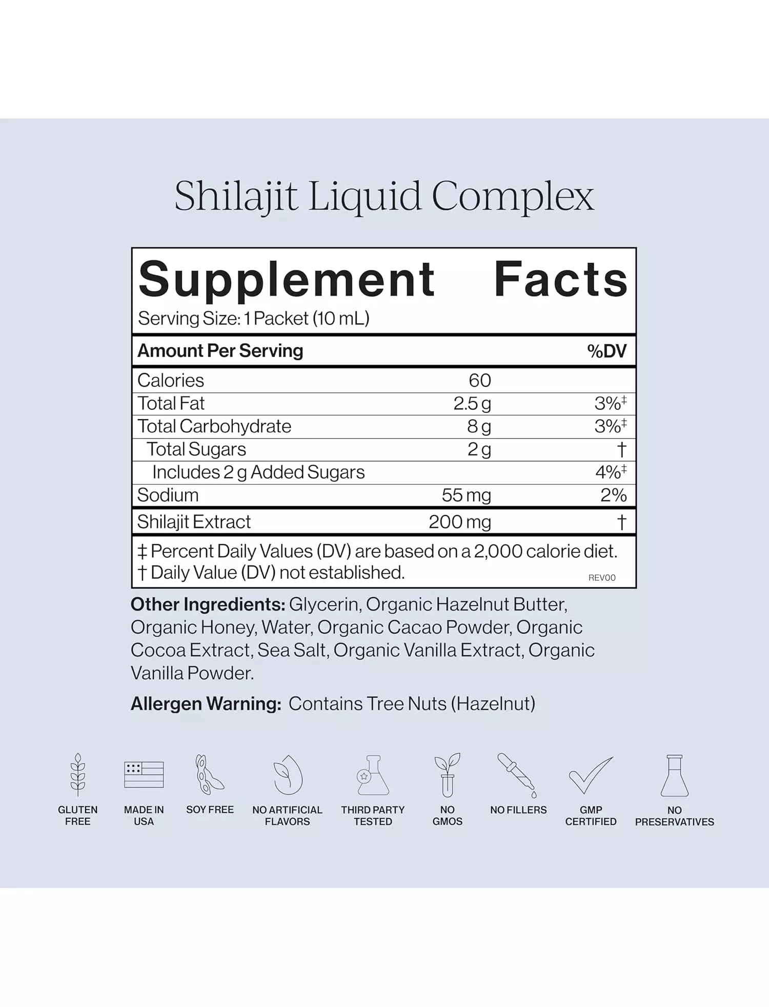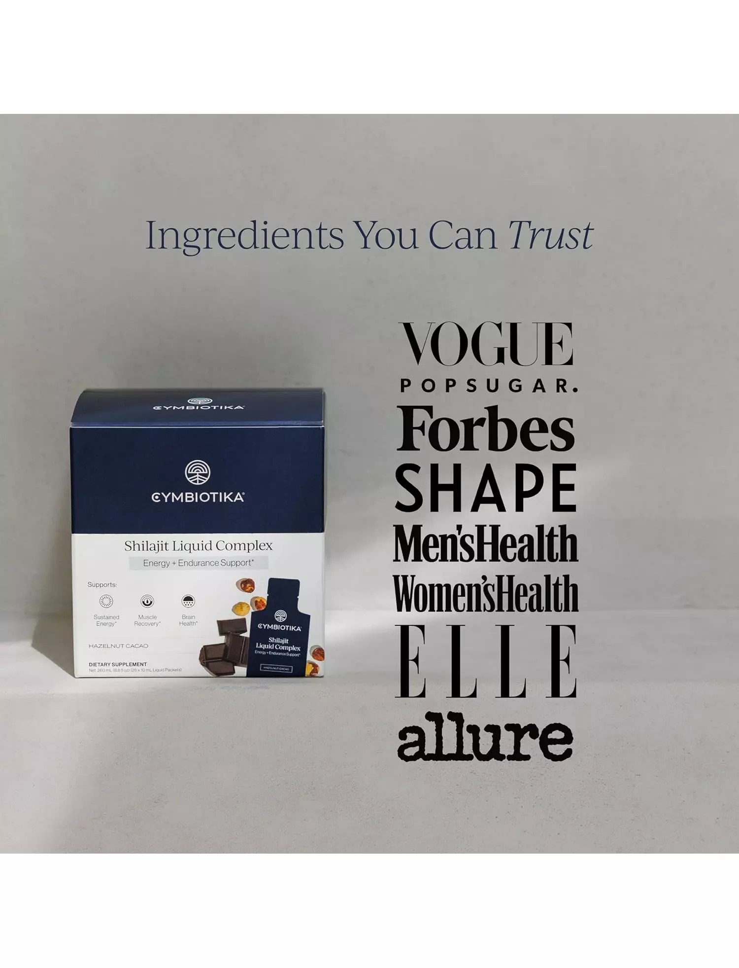 Відчуйте злиття найпотужніших елементів Землі в одній революційній формулі. Рідкий комплекс «Шиладжит» від Cymbiotika — це не просто чергова добавка, а поєднання високогірного мумійо, органічного какао, сирого меду, морської солі та олії фундука. Ці поживні інгредієнти утворюють повноцінний комплекс цілісних продуктів, що забезпечує енергію, витривалість та відновлення — все в одній зручній упаковці.