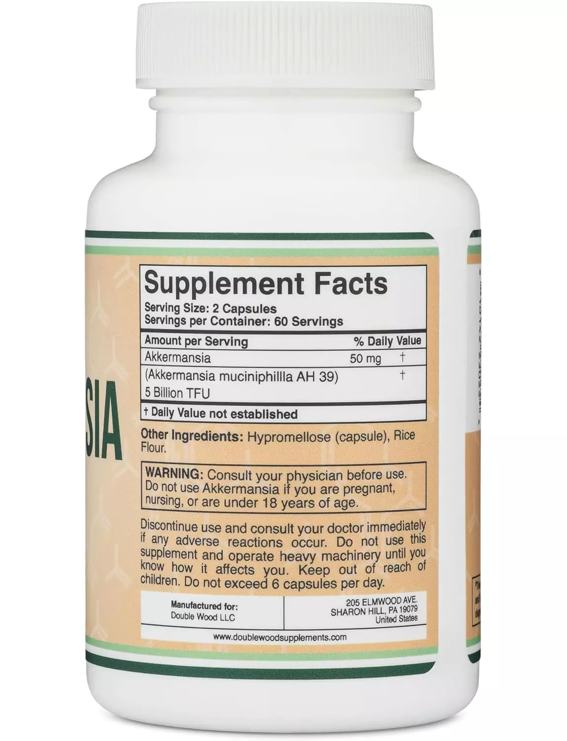 Пробіотик Akkermansia від Double Wood's містить 120 капсул (60 порцій), що стандартизовані до 5 млрд КУО. Незалежні дослідження показали, що всі ці одиниці є живими, а вміст КУО в продукті становить 50 млрд КУО на грам.