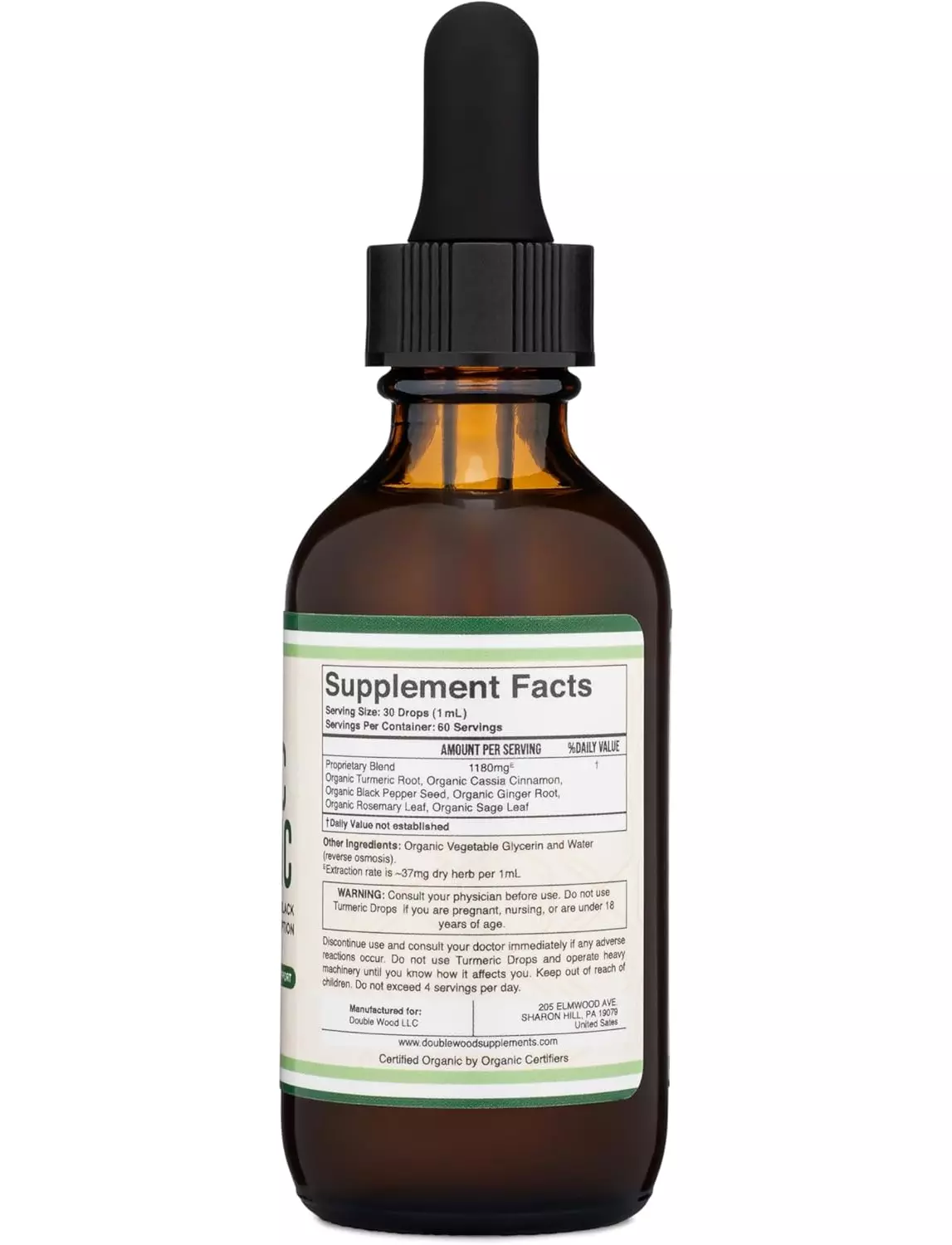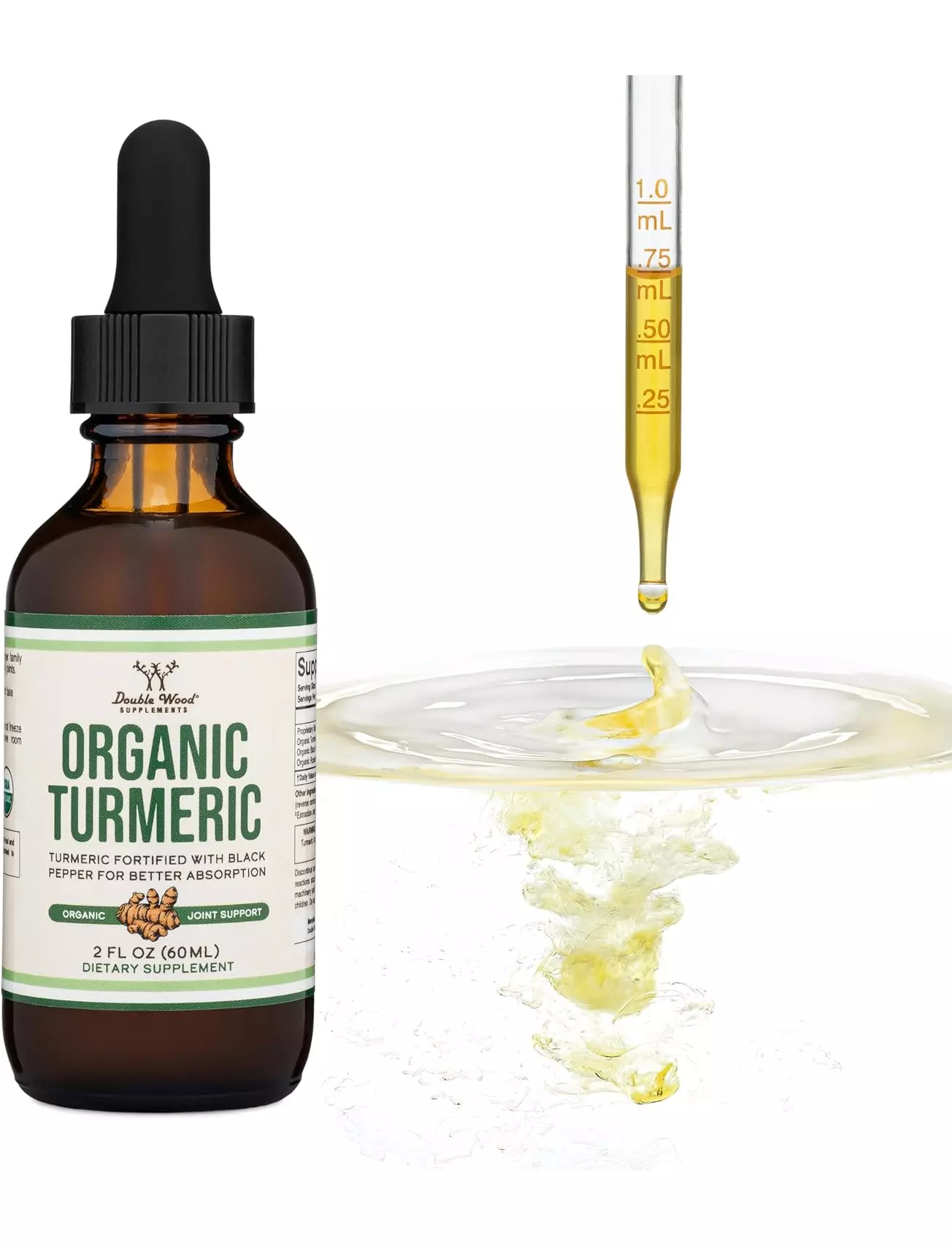Відкрийте для себе органічні краплі куркуми від Double Wood з чорним перцем для поліпшеного засвоєння.
