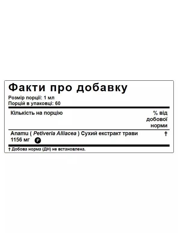Anamu (Petiveria Alliacea) (сухий екстракт трави) - 1156 мг / *