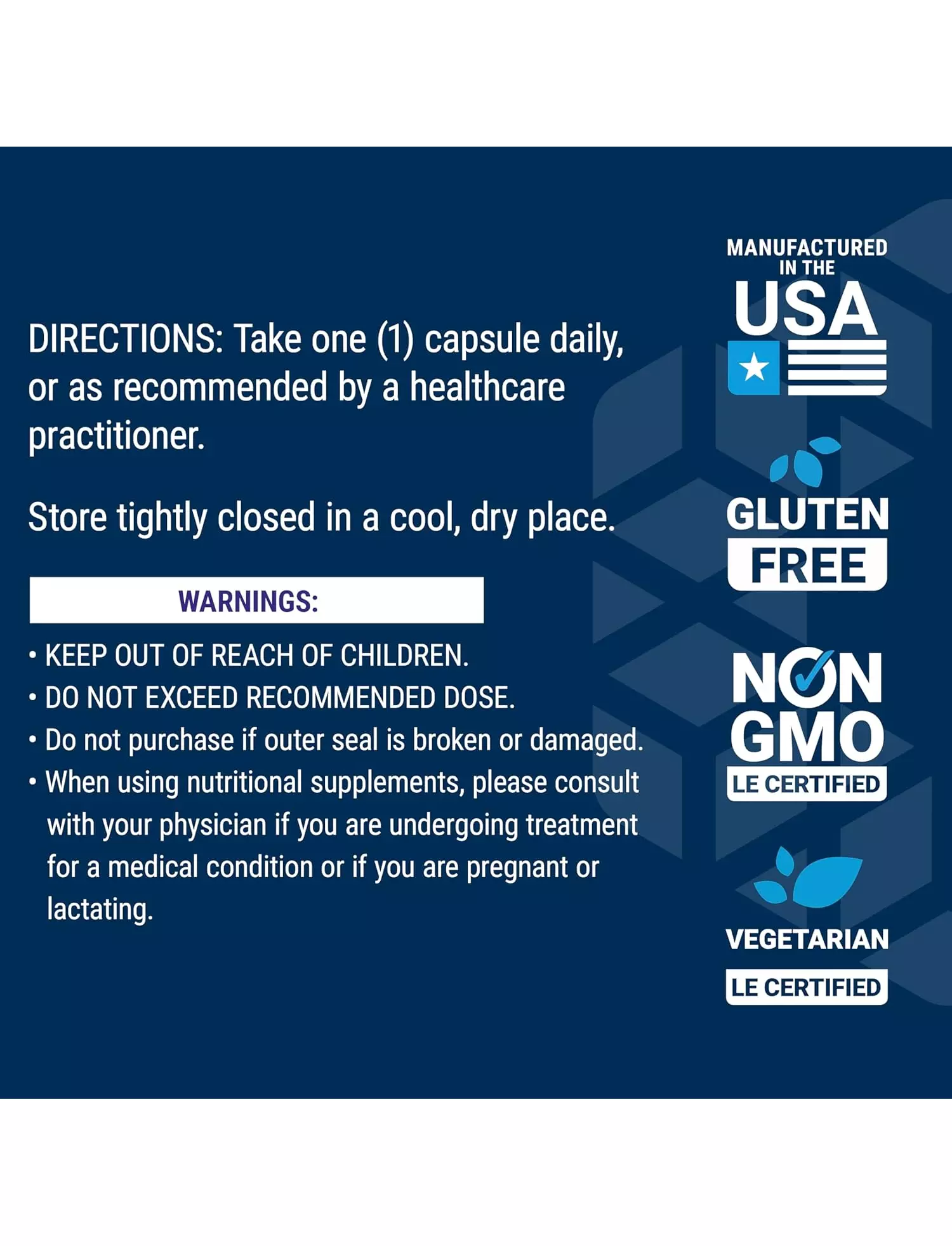 - Приймати одну (1) капсулу щодня або за рекомендацією фахівця.