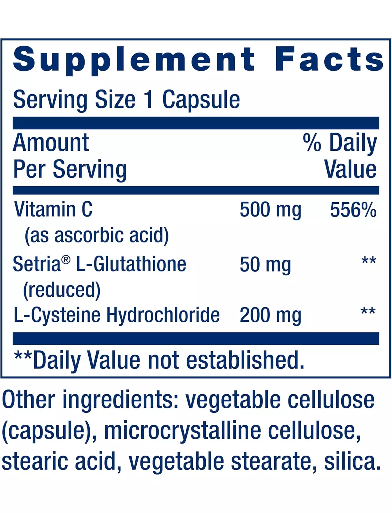 Наша формула містить L-цистеїн, амінокислоту, що має безліч переваг для здоров'я, починаючи від синтезу білка і закінчуючи виробленням глутатіону. Вона також містить вітамін С та додатковий глутатіон, які допомагають захистити ваші клітини від окислювального стресу, видаляють вільні радикали, підтримують здорове засвоєння заліза та багато іншого.