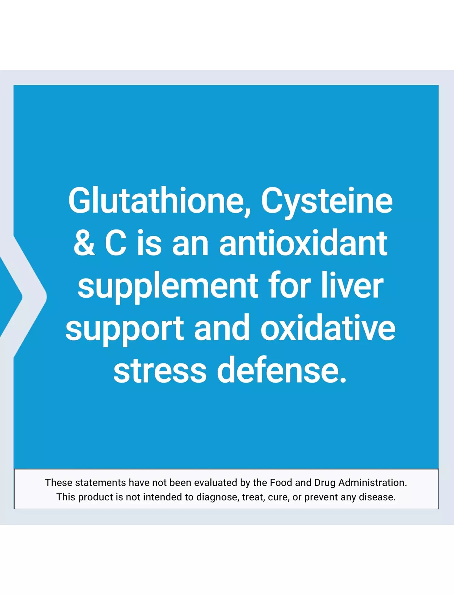 Глутатіон, цистеїн та С — це потужна антиоксидантна добавка зі спрямованою поживною дією, яка забезпечує внутрішньоклітинну антиоксидантну підтримку та сприяє здоровій функції печінки.