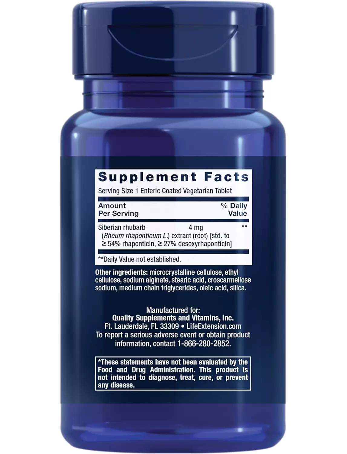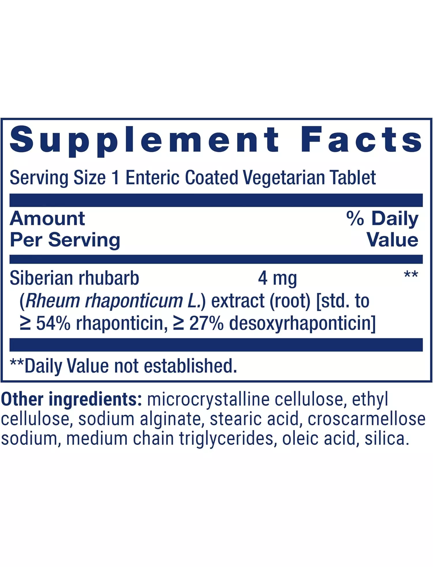 Menopause Relief містить екстракт кореня сибірського ревеню, стандартизований за двома унікальними сполуками: рапонтицином та дезоксирапонтицином. У доклінічних дослідженнях цей унікальний екстракт вибірково активував специфічний рецептор естрогену, ER-β, залишаючи рецептор ER-α неушкодженим. Вчені вважають, що саме тому Menopause Relief полегшує поширений менопаузальний дискомфорт.