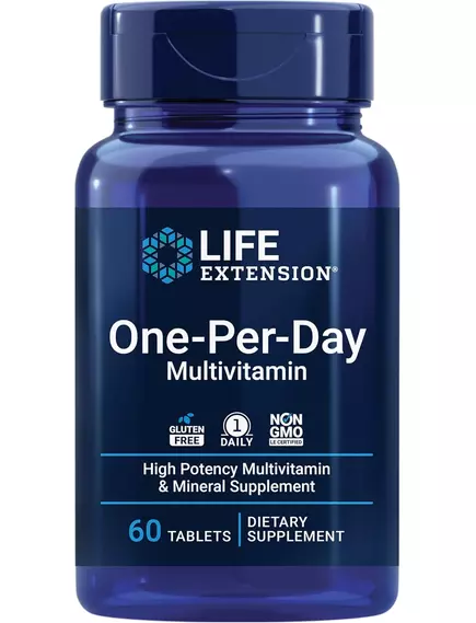 Life Extension One-Per-Day Multivitamin — це мультивітамінний комплекс, який дозволяє легко отримувати понад 25 різних вітамінів, мінералів та екстрактів, багато з яких відповідають або перевищують рекомендовані добові норми.