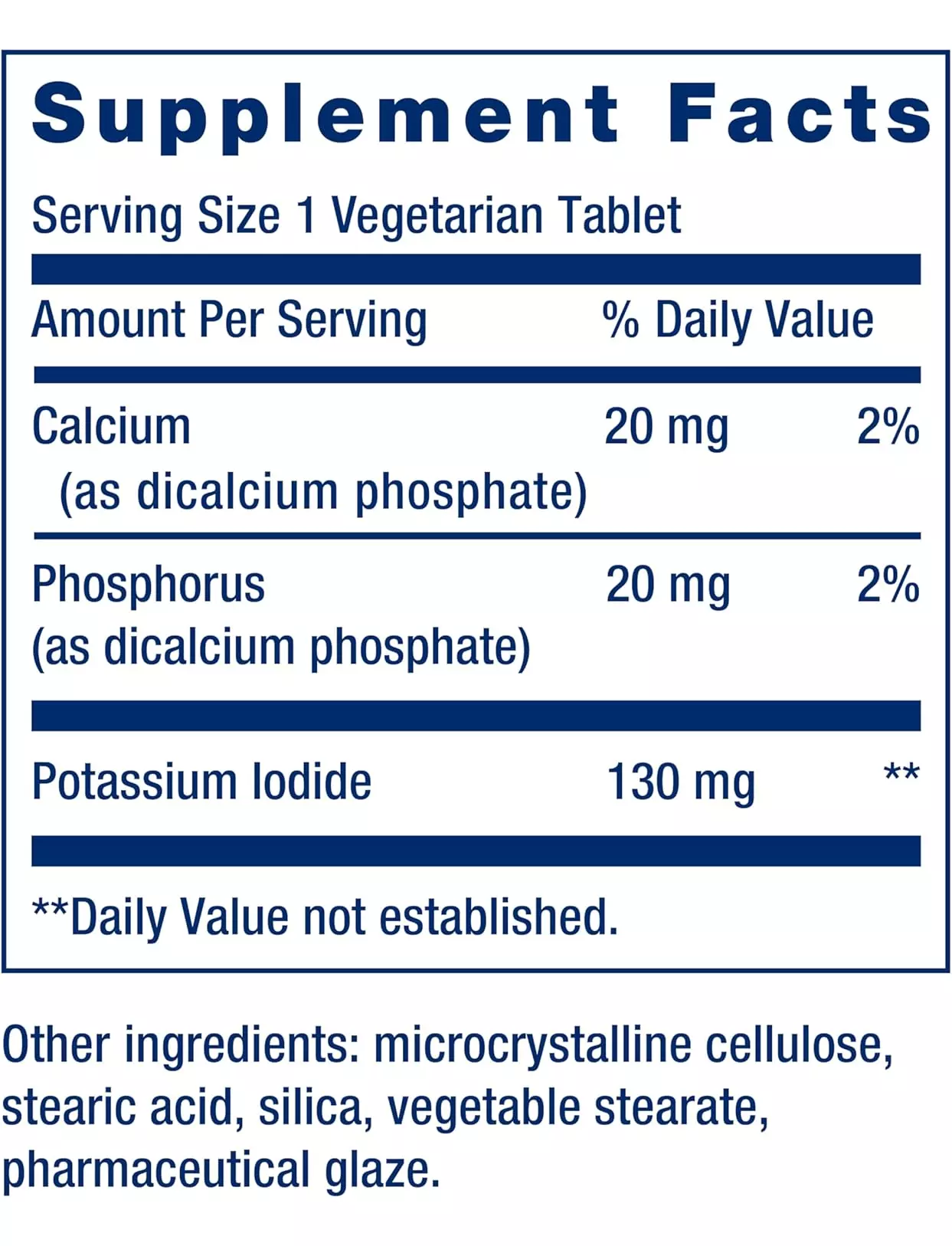 Забезпечує високий рівень йоду (100 мг) у вигляді йодиду калію.