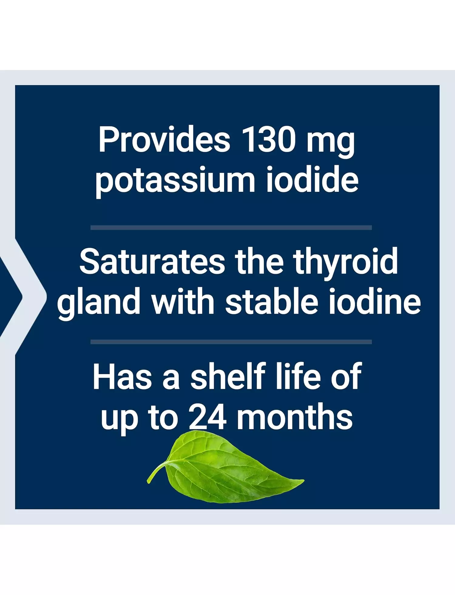 Переваги йодиду калію Забезпечує високий рівень йоду (100 мг) у формі йодиду калію.