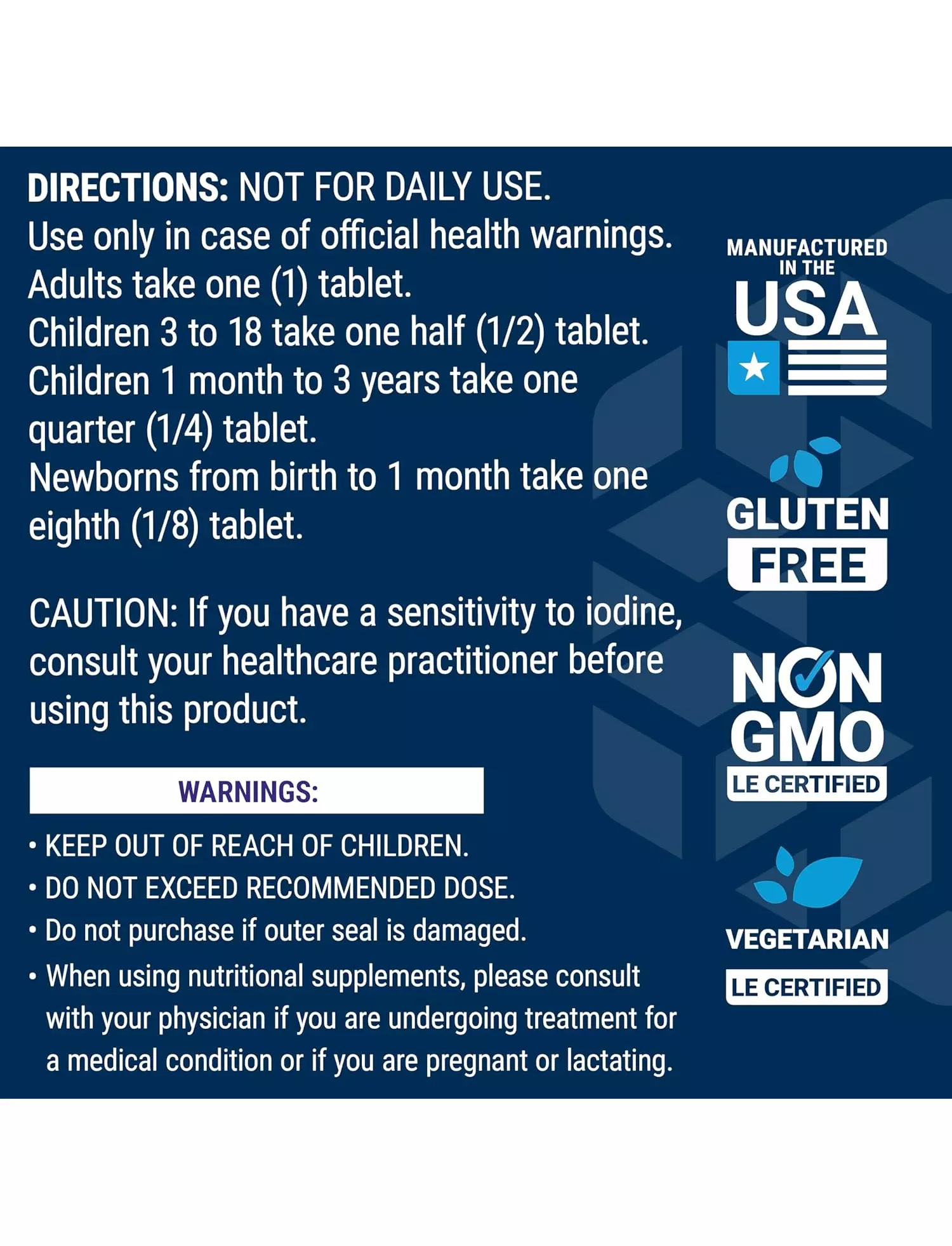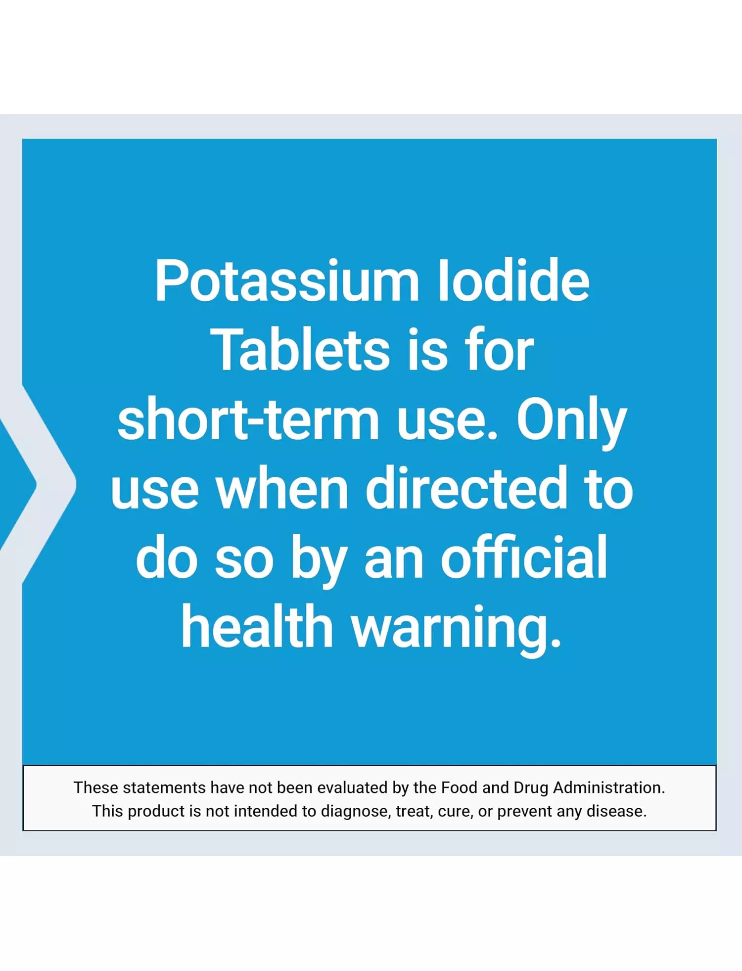 Ці таблетки йодиду калію призначені для короткострокового використання і лише в тому випадку, якщо це передбачено офіційним попередженням про шкоду здоров'ю.