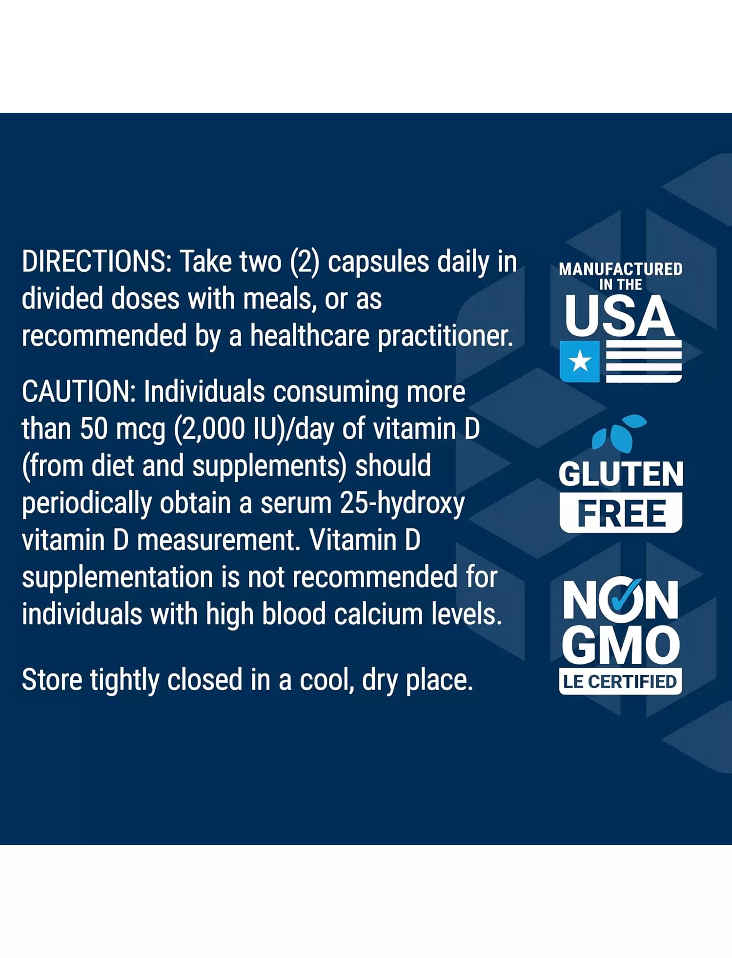 - Вітамін Д3 (у вигляді холекальциферолу) (2,000 МО) 50 мкг / 250 %