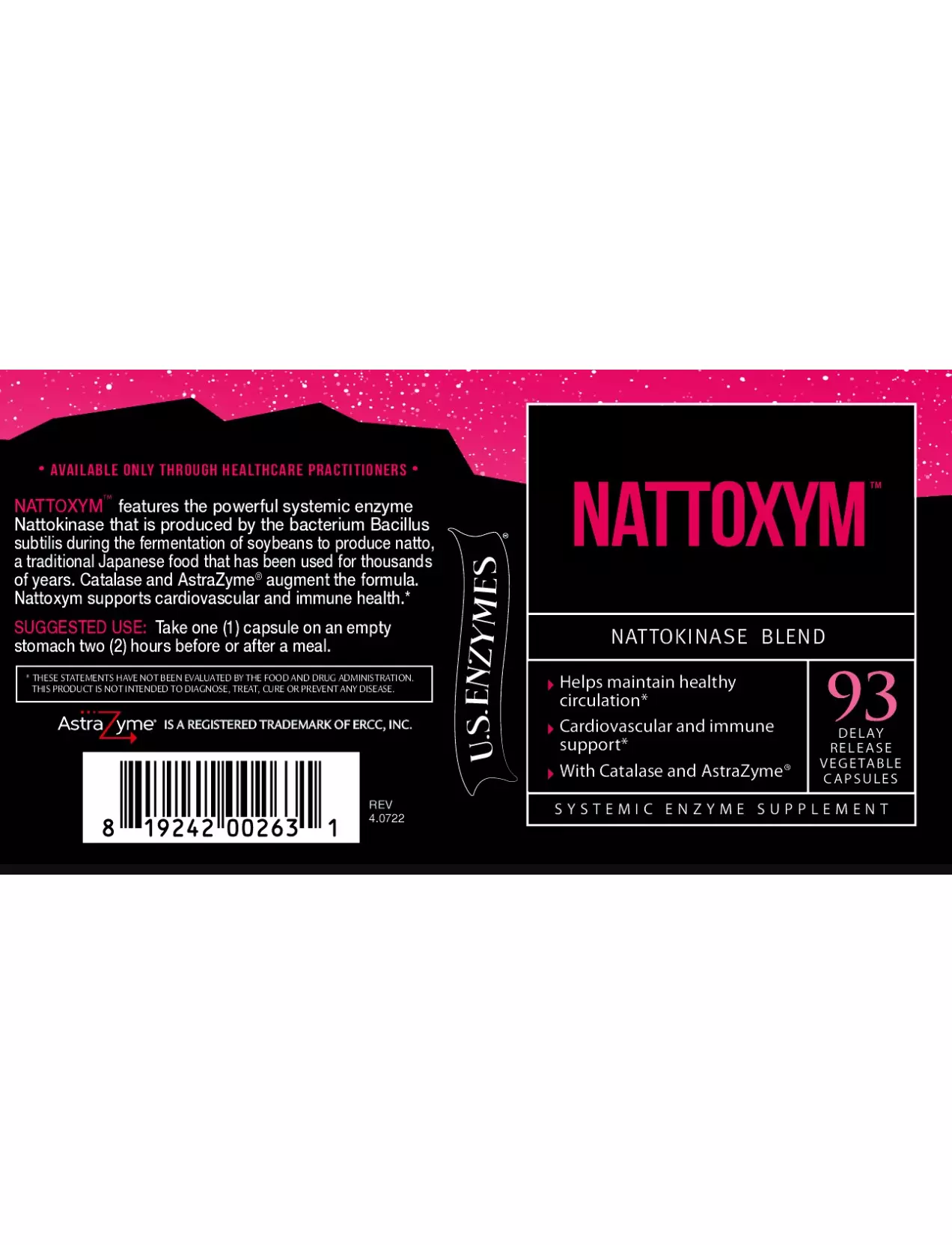 NATTOXYM™ — чисте джерело наттокінази, системного ферменту, який забезпечує прискорену підтримку кровообігу та серцево-судинного здоров'я. Наттокіназа — це потужний системний фермент, який виробляється бактерією Bacillus subtilis під час ферментації соєвих бобів для отримання натто, традиційної японської страви, що використовується вже тисячі років. Каталаза та AstraZyme® доповнюють формулу.