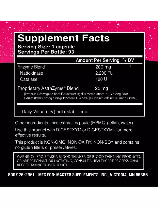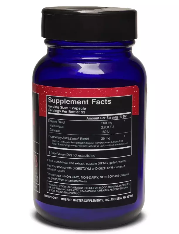 Допомагає підтримувати здоровий кровообіг, серцево-судинну та імунну системи. Містить наттокіназу, каталазу та AstraZyme®.