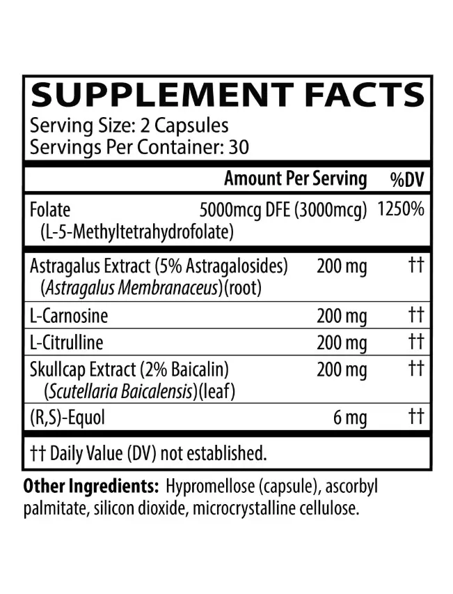 Фолат (L-5-метилтетрагідрофолат) – 5000 мкг DFE (3000 мкг) / 250%