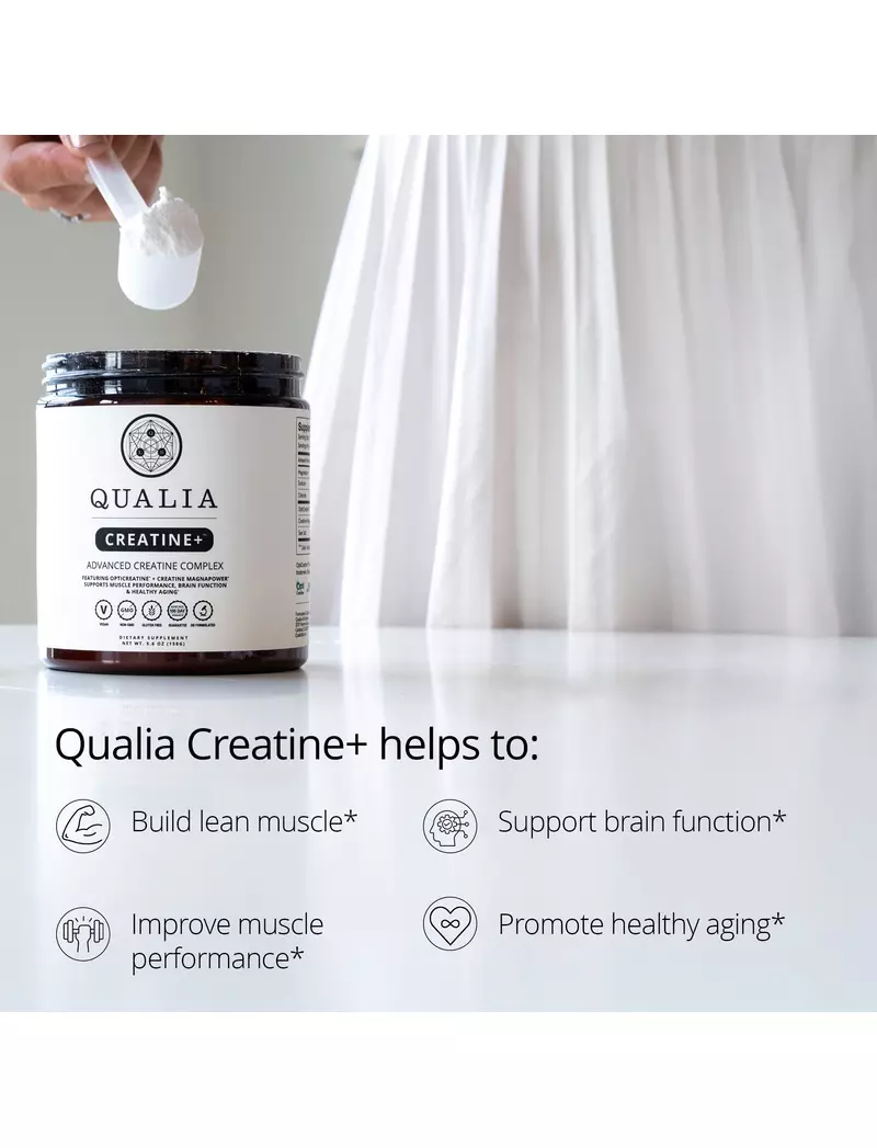 Приймайте Qualia Creatine+ для підтримки сухих м’язів, спортивних результатів, когнітивних функцій і здорового старіння.