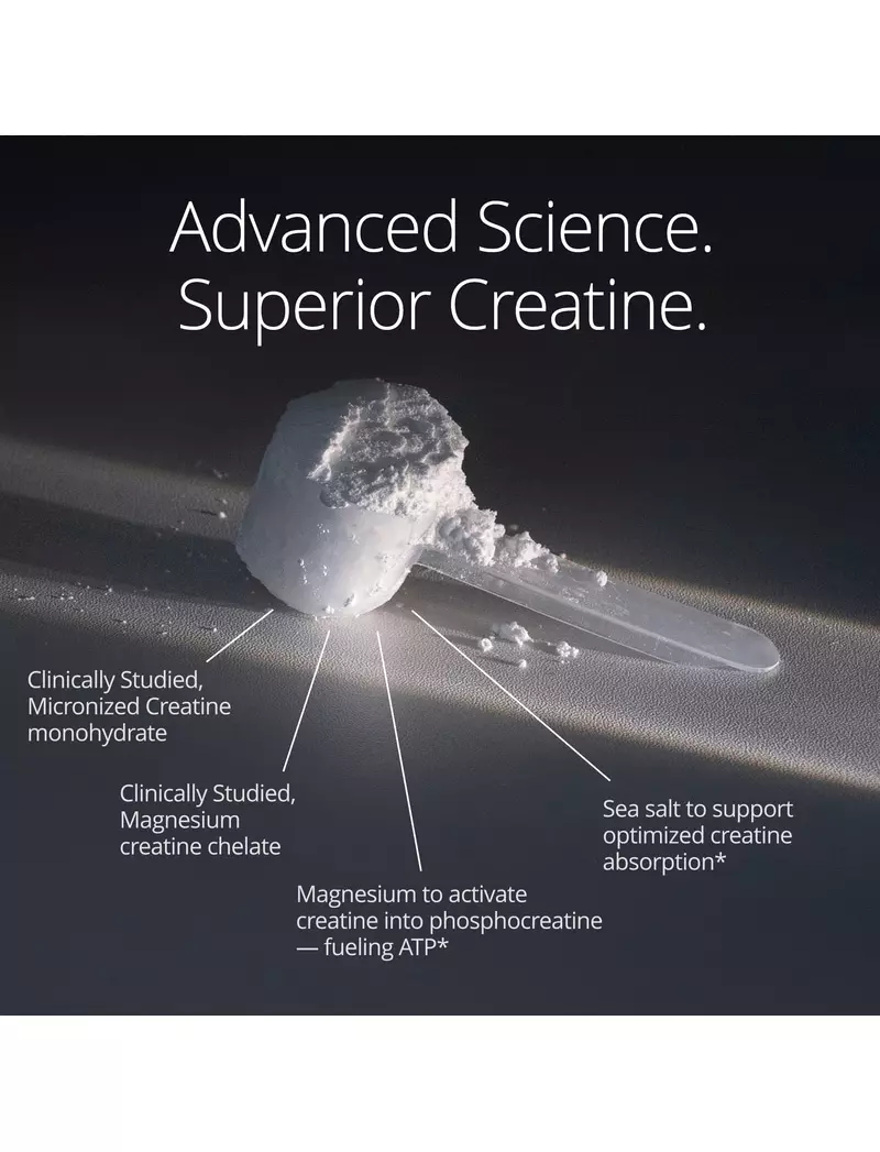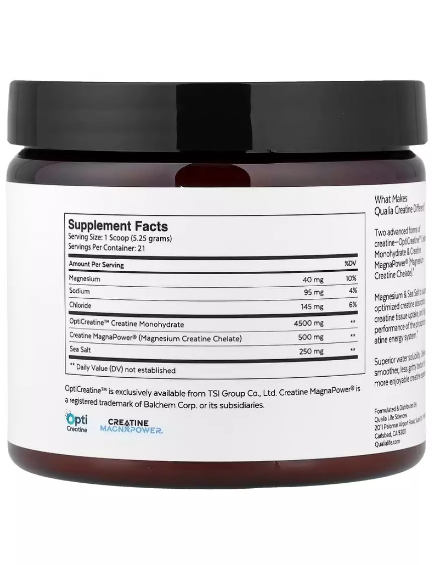 Qualia Creatine+ поєднує дві преміальні, клінічно досліджені форми креатину з морською сіллю, створюючи високовсмоктовувану формулу, яка допомагає транспортувати креатин по всьому тілу та встановлює новий стандарт максимальної ефективності креатину.