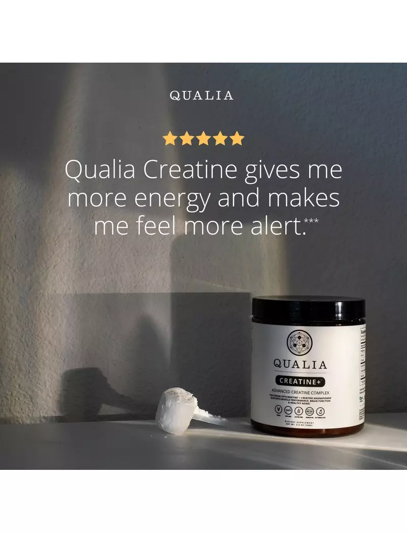 Qualia Creatine+ містить дві клінічно досліджені форми креатину у формулі, розробленій лікарями, яка сприяє: