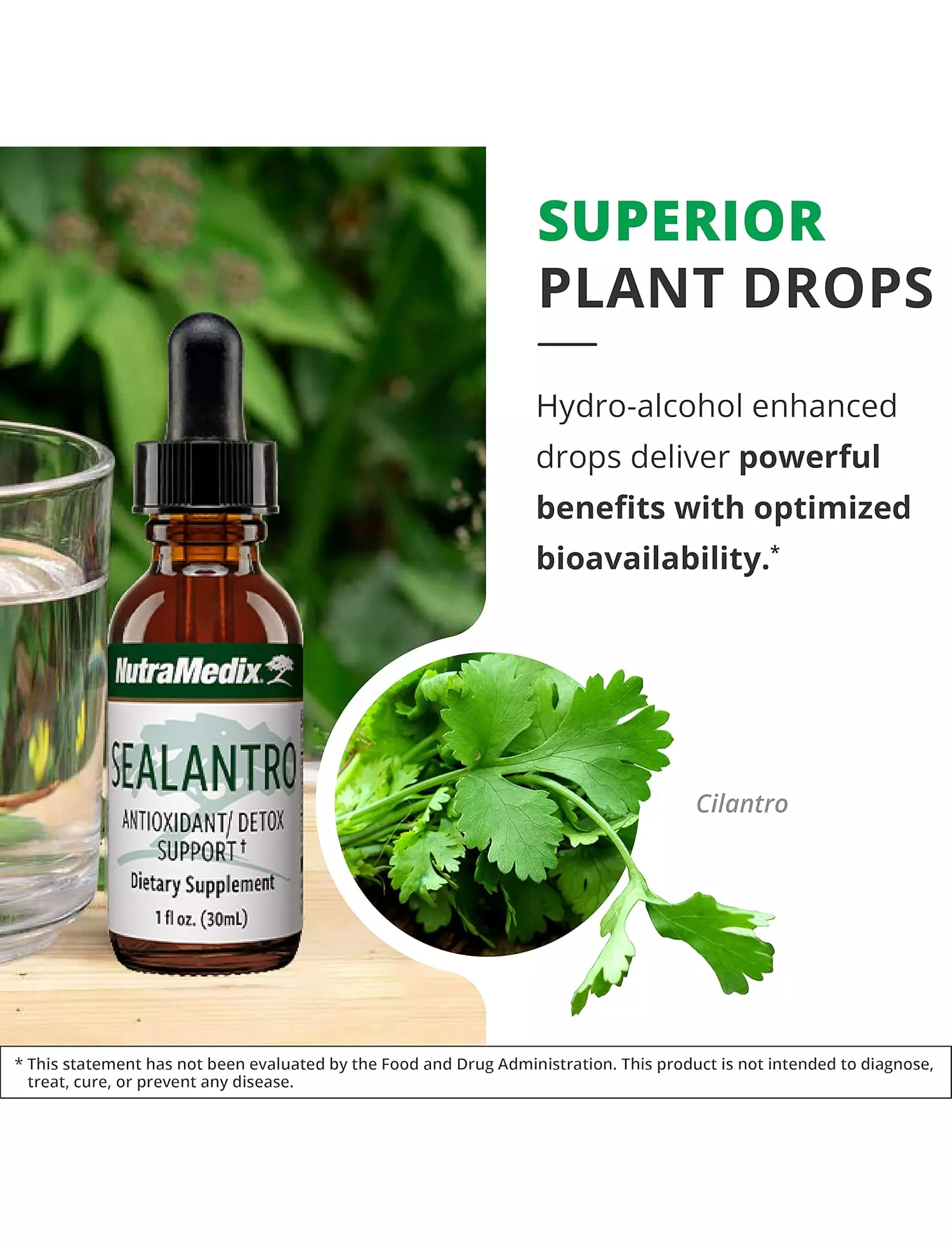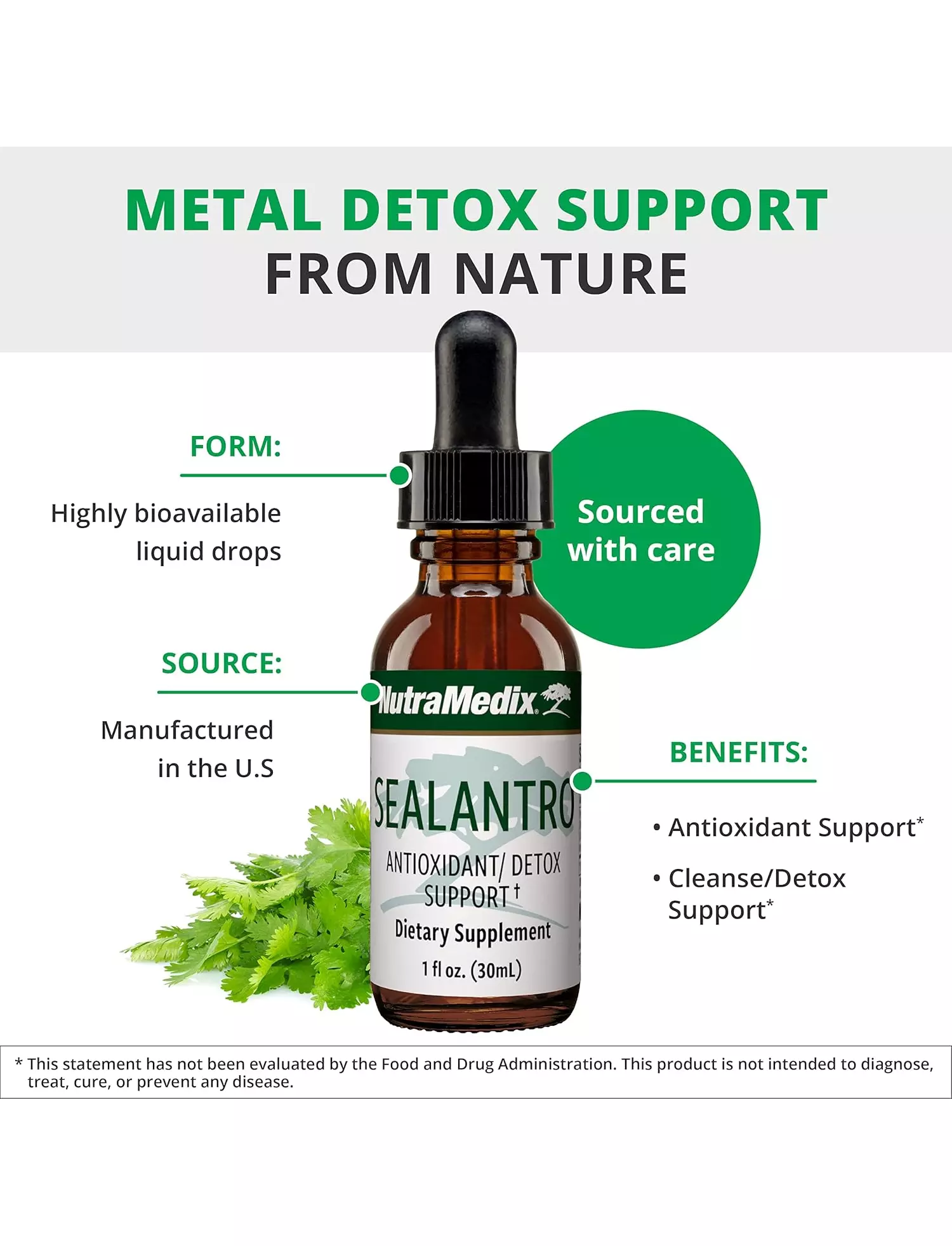 Ця потужна рідка добавка з потрійною детокс-формулою містить рослинні екстракти хлорели, кінзи та тихоокеанських холодноводних червоних водоростей, які допомагають задіяти потужні детокс-системи вашого організму для досягнення балансу, як всередині, так і зовні. Скористайтеся силою трав'яних екстрактів та отримайте необхідну вашому організму детокс-очисну підтримку за допомогою Sealantro від Nutramedix.