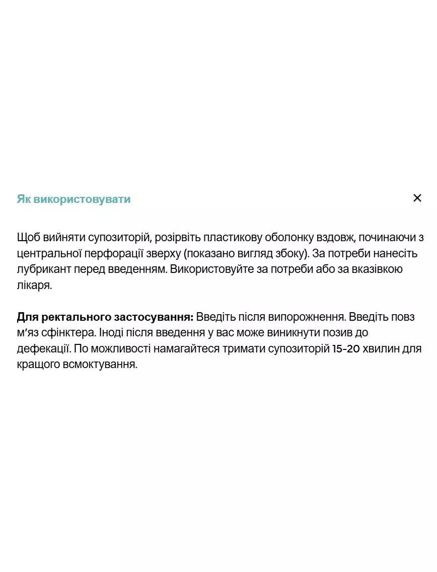 Використовуйте при необхідності або за вказівкою вашого лікаря.Для ректального застосування: