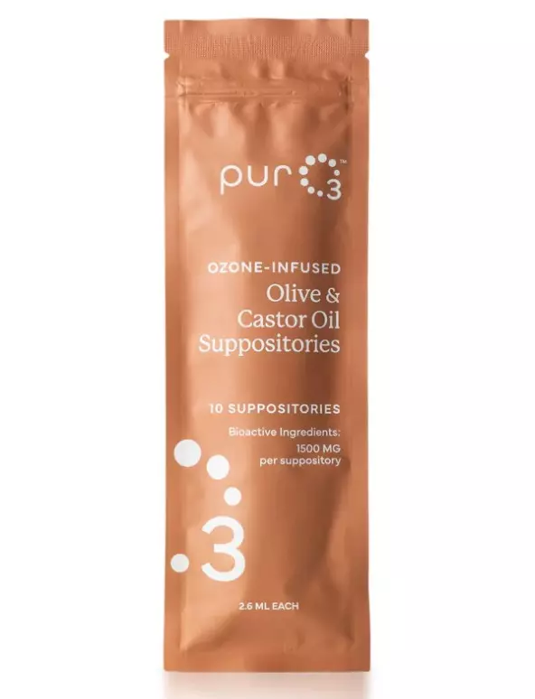 Кожен озоновий супозиторій PurO3 має об'єм 2,6 мл. Вони включають повністю озоновані олії, створені за допомогою генератора озону холодної плазми з медичним киснем. Перевага використання озону холодної плазми (низькою частоти) при виробництві озонованої олії полягає в тому, що в олію не потрапляє тепло. Традиційні генератори озону (високої частоти) виробляють тепло понад 250 градусів, яке потрапляє в олію і може призвести до втрати деяких корисних властивостей.