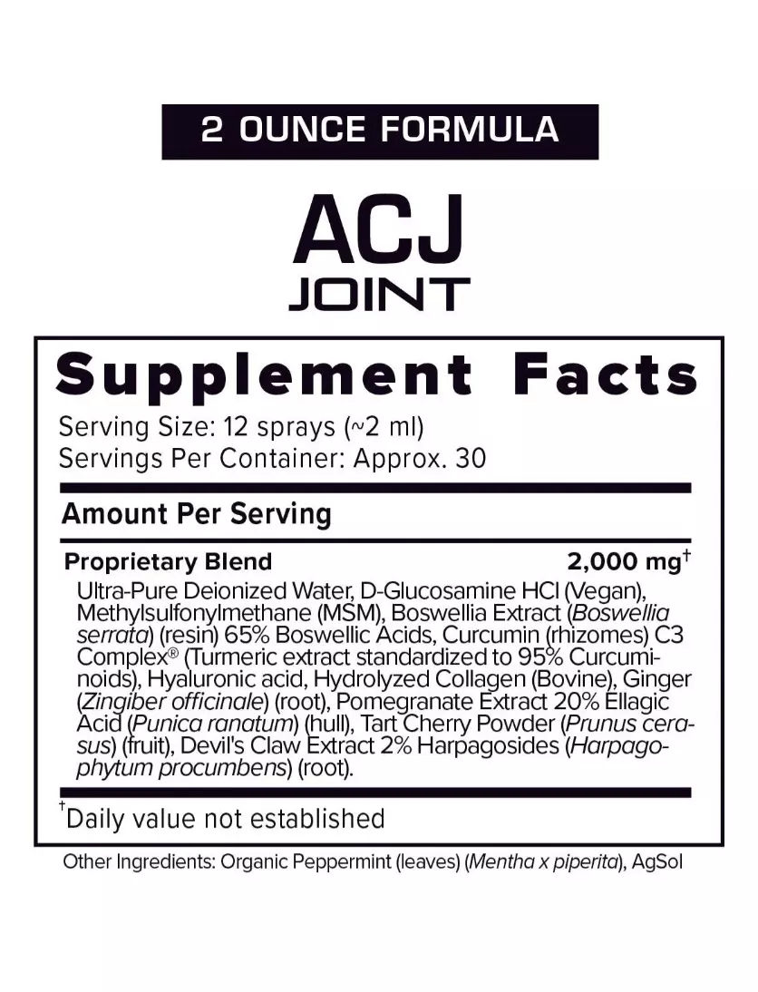 Щоденний прийом ACJ Joint Extra Strength дає відчутні результати, сприяючи змащуванню та живленню суглобів та м'язів на клітинному рівні, що надає вам додаткової сили та оновленої життєвої сили. Відчуйте різницю навіть від кількох розпилювань на день