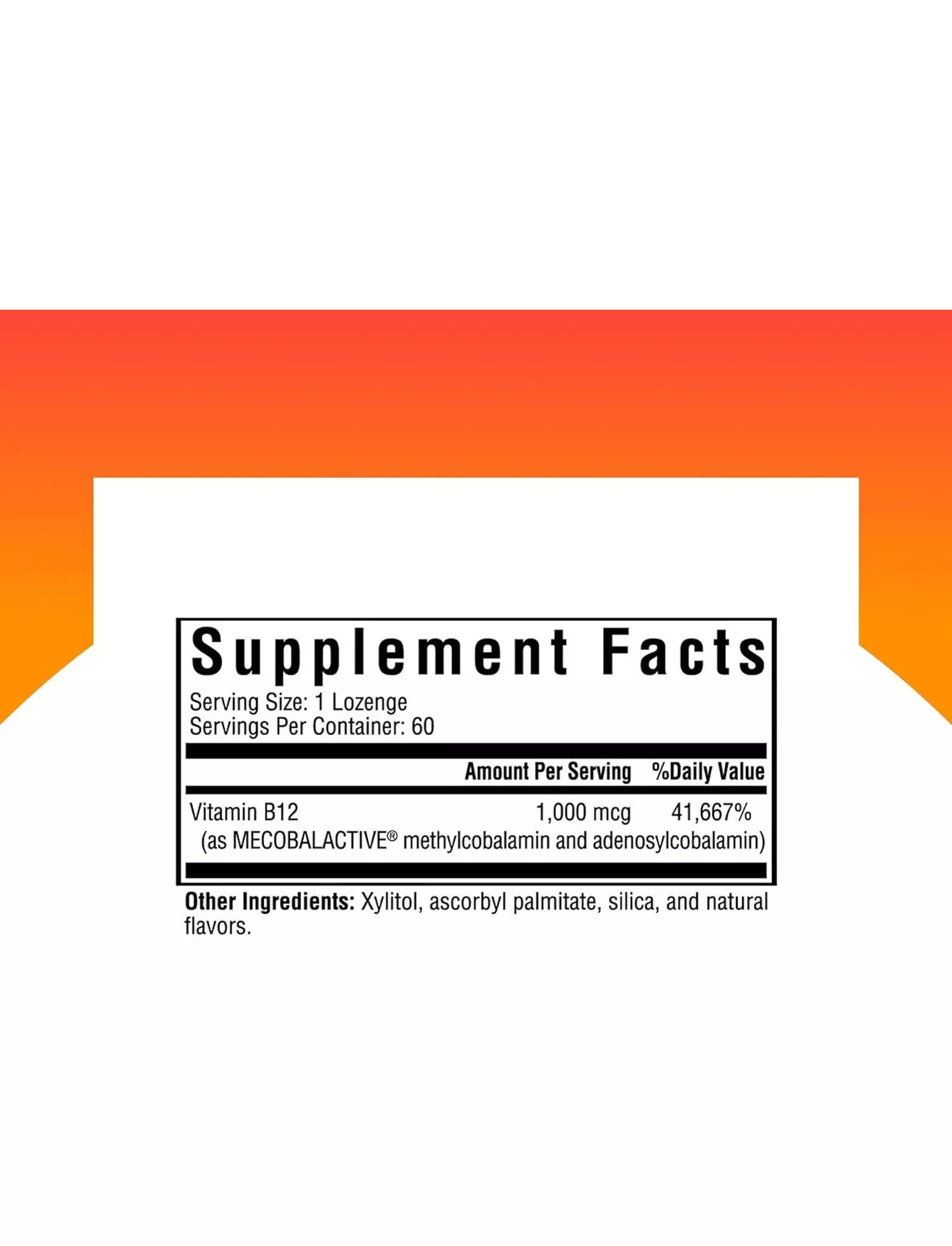 Метил Б12 1000 містить біоактивні форми вітаміну Б12, які ваш організм може легко розпізнати і використовувати. Ці смачні пастилки створені для швидкого перетравлення та всмоктування через кишківник та клітинні стінки.