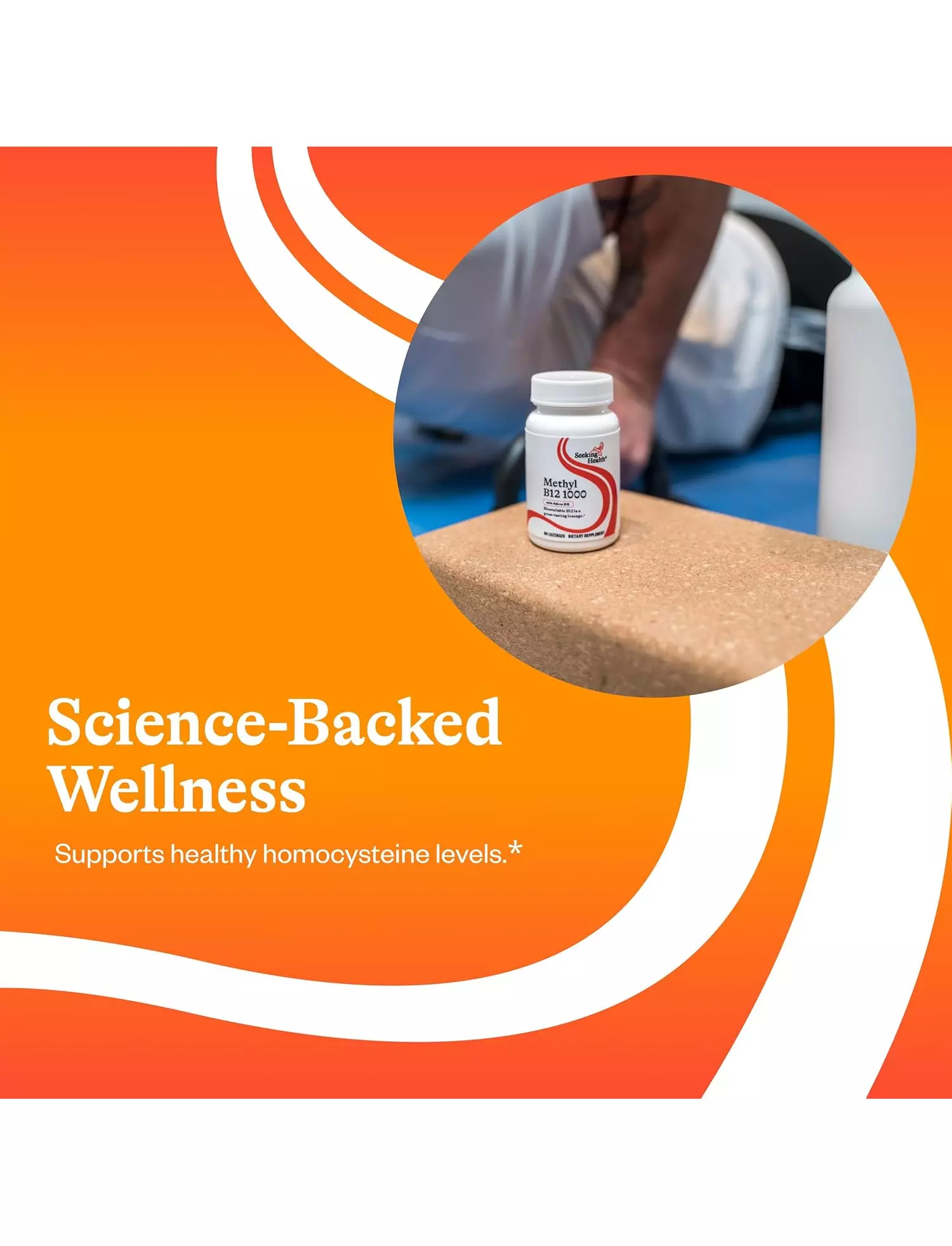 Метил Б12 1000 містить вітамін Б12 у біоактивних формах метилкобаламіну та аденозилкобаламіну. Ці смачні пастилки, що добре засвоюються, підтримують здорове метилювання, рівень MTHFR і гомоцистеїну.