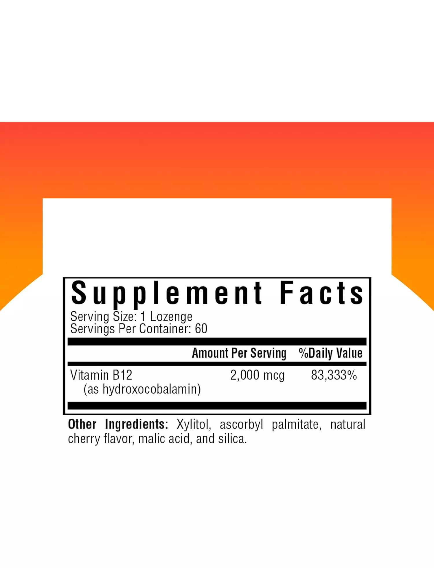 поживні речовини в кожній пастилці Б12 підтримують здоровий рівень гомоцистеїну, когнітивне здоров'я та нейронну детоксикацію, а також здоровий синтез і виробництво ДНК.Без метилу: