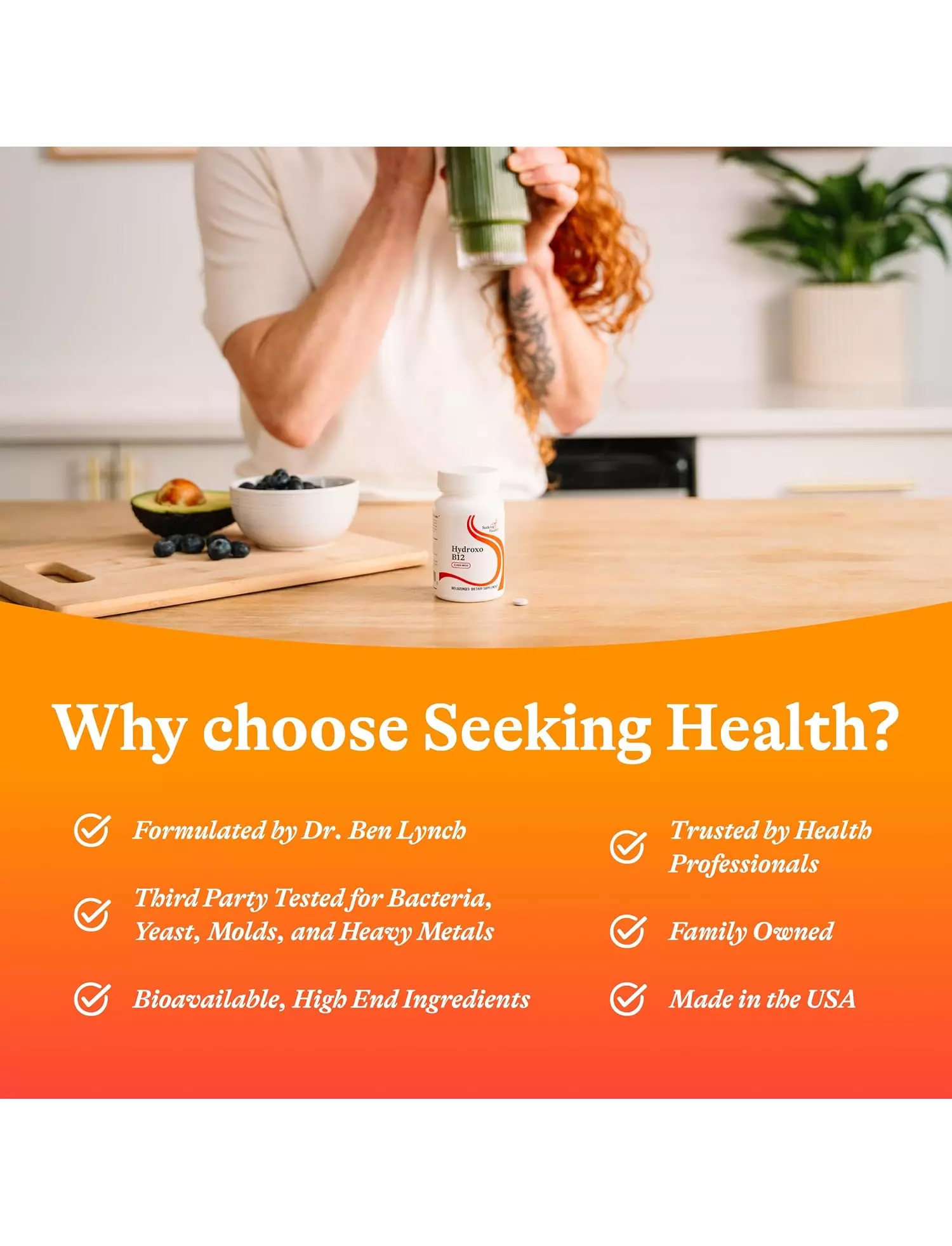 у Seeking Health кожен інгредієнт ретельно відбирається, досліджується й тестується. Кожен інгредієнт відповідає суворим вимогам до виробництва та стандартів якості, перш ніж будь-який інгредієнт буде дозволений до використання.
