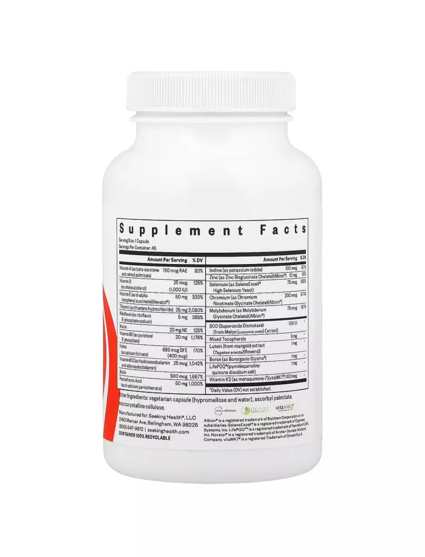SEEKING HEALTH MULTIVITAMIN ONE MF / МУЛЬТИВІТАМІНИ БЕЗ МЕТИЛІВ ОДИН РАЗ НА ДЕНЬ 45 КАПСУЛ