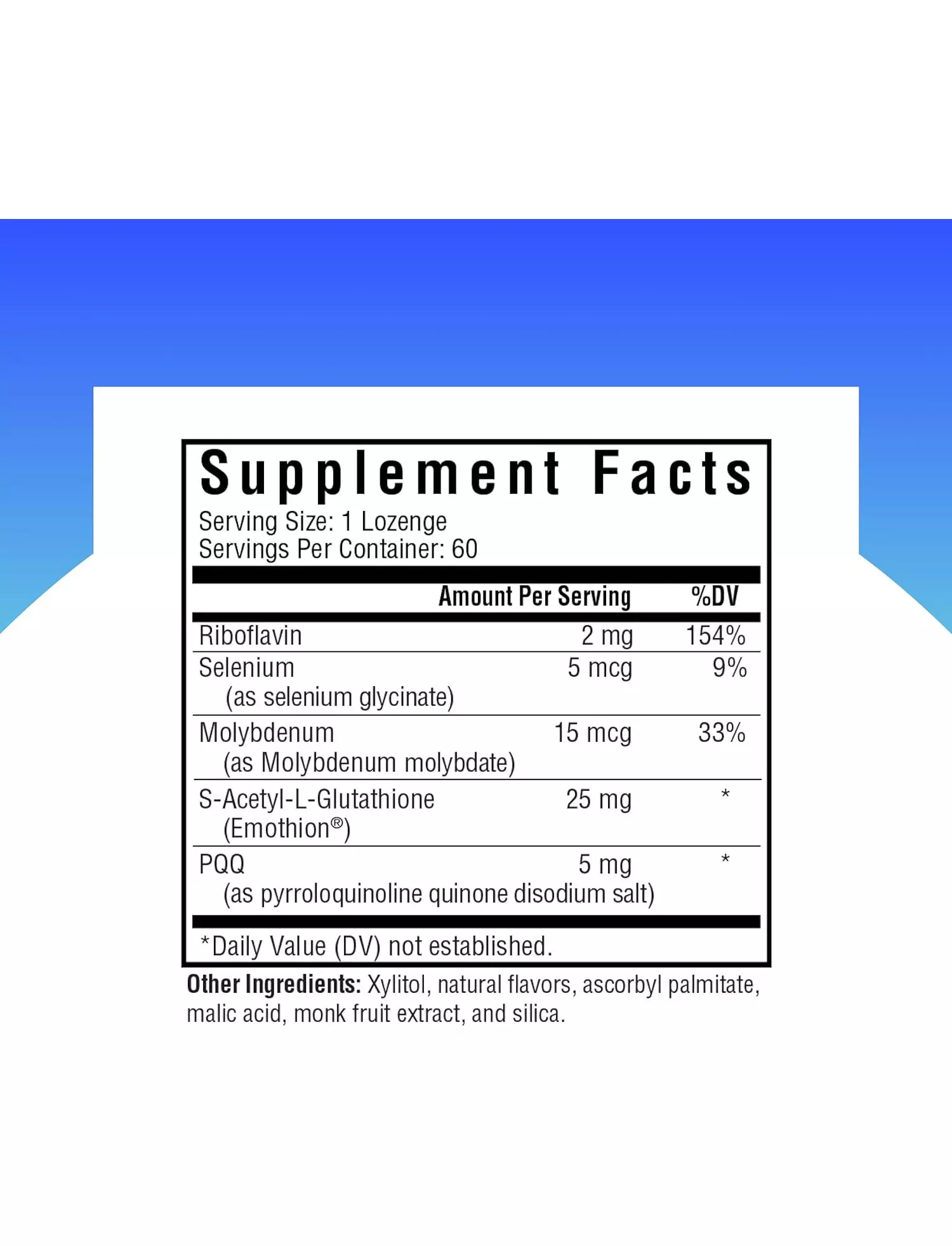 цей вітамін B переробляє пошкоджений і витрачений глутатіон, підтримуючи фермент глутатіонредуктази (GSR).LifePQQ™: