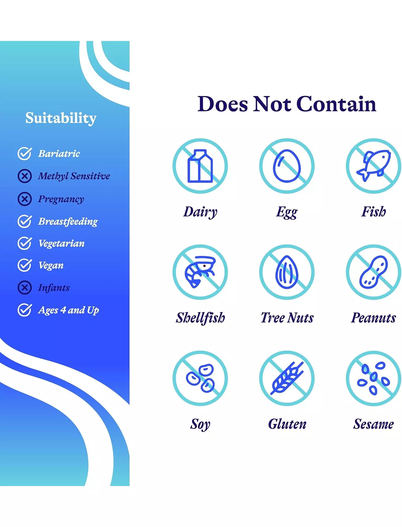 Інші інгредієнти: очищена вода, натуральні ароматизатори, лецитин соняшнику з токоферолами, органічна камедь акації, сорбат калію та Lipid Protect (олеїнова кислота, CoQ10, токотрієноли з каротиноїдами, CMO (цетилмирістолеат (олія горіха комбо)), олія астаксантину (водорості)).
