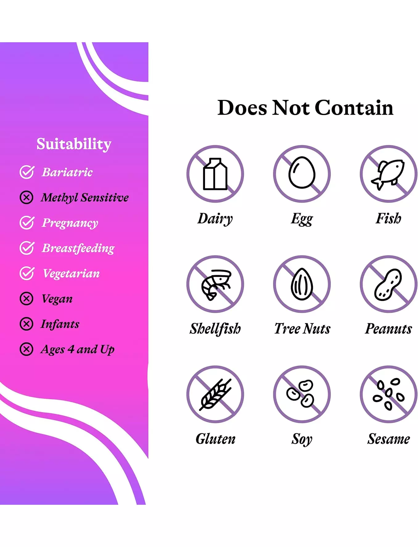 біодоступні форми фолієвої кислоти та вітаміну Б12 плюс ТМГ (триметилгліцин) підтримують оптимальне метилювання. Ці донори метильної групи підтримують шлях метилювання, особливо під час вагітності. Вони забезпечують метильні групи, необхідні для здорового розвитку мозку та хребта дитини, когнітивних функцій та генетичної експресії.Очі та слизові оболонки: