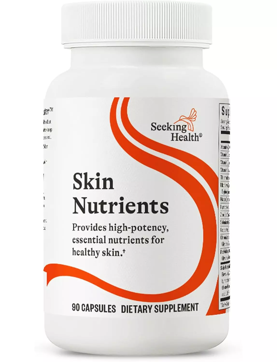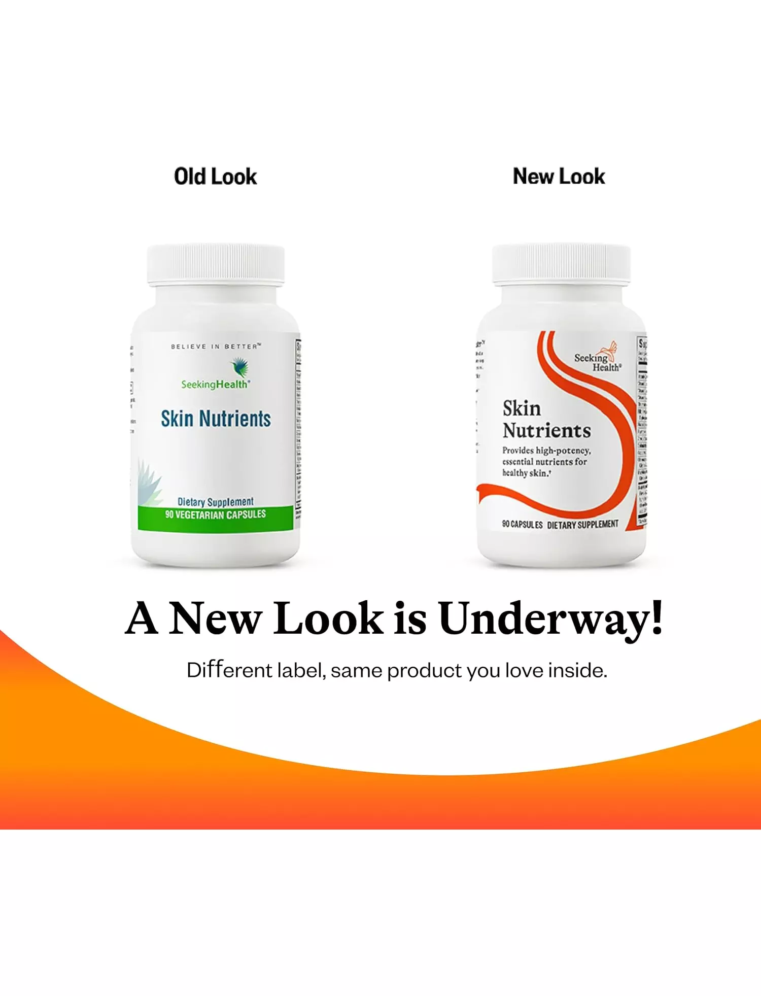 Skin Nutrients від Seeking Health ретельно розроблені, щоб замінити ваші полівітаміни та надати вам високоефективну суміш необхідних поживних речовин, спрямовану на підтримку здоров'я вашої шкіри зсередини.Комплексна формула: