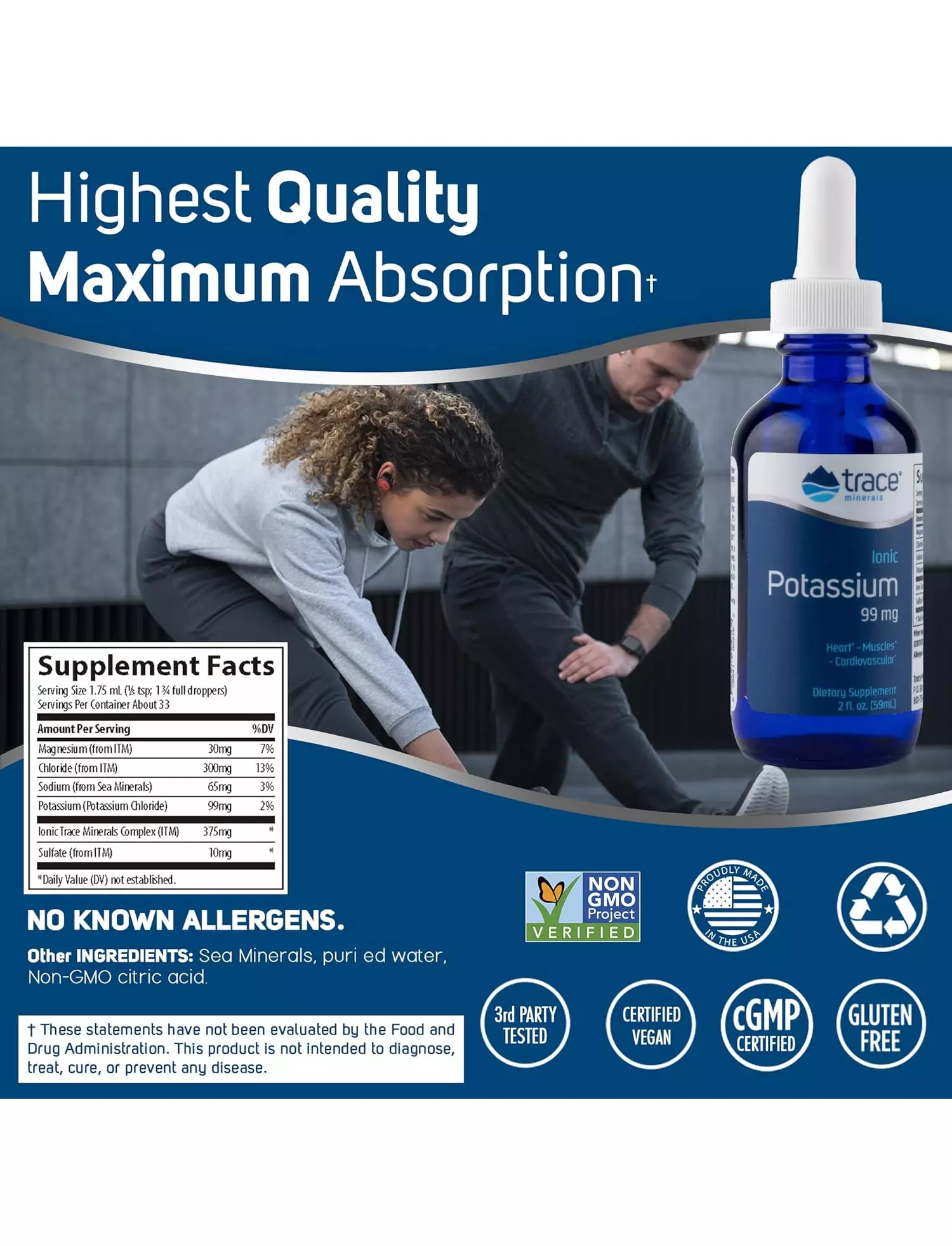 Калій іонний 99 мг 59 мл / Ionic Potassium, Trace Minerals