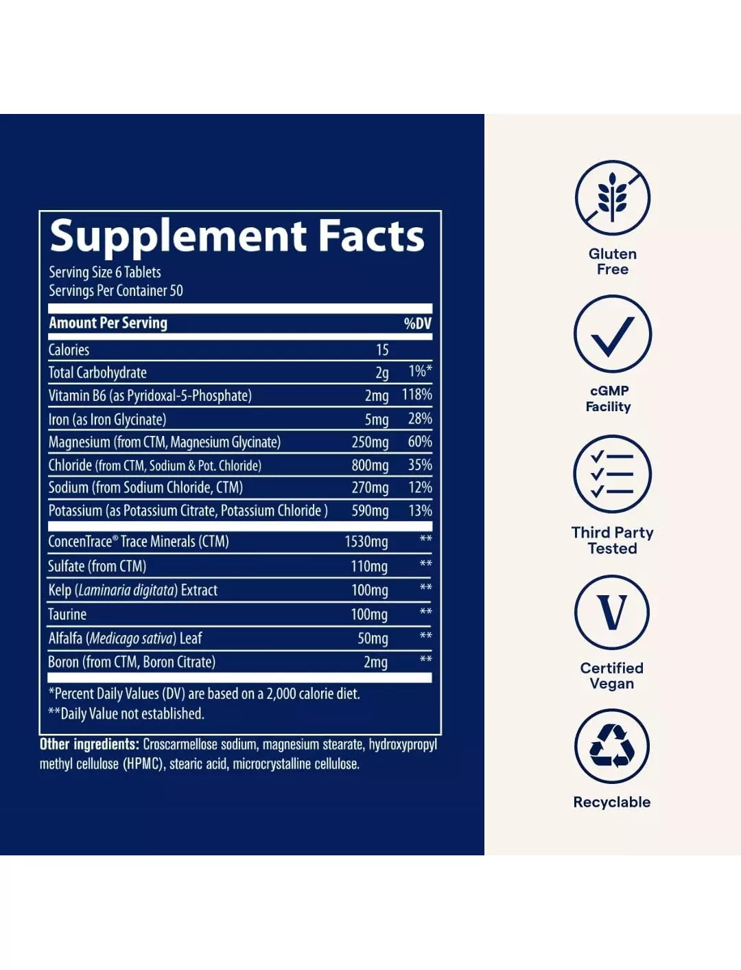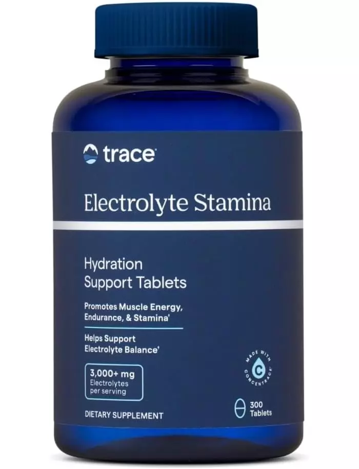 Таблетки Electrolyte Stamina ідеально підходять для спортсменів і людей, які працюють за високих температур, а також для тих, хто очікує високий рівень втрати рідини. До складу входять основні електроліти: магній, калій, хлорид і натрій, а також вітамін Б6, таурин, бурі водорості, люцерна та понад 72 природні іонні мікроелементи з комплексу ConcenTrace®. Вітамін Б6 (P-5-P) та таурин допомагають ефективніше надходити магнію в клітини для зменшення м'язових судом, підтримки м'язової витривалості, підтримки вироблення АТФ та серцево-судинної витривалості.
