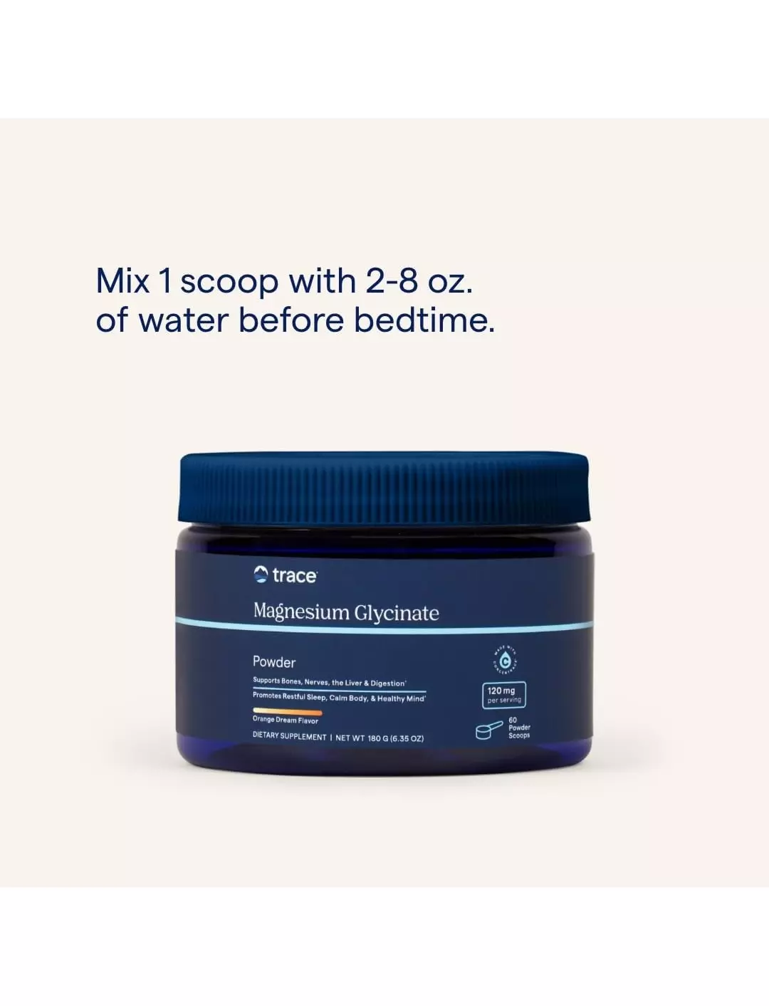 Гліцинат магнію — це легкозасвоювана і біодоступна форма магнію, яка приносить користь кісткам, нервам і травному тракту і дуже щадить шлунок. Він відомий тим, що підтримує якісний сон та сприяє здоровому, природному режиму сну та циклам швидкого сну.