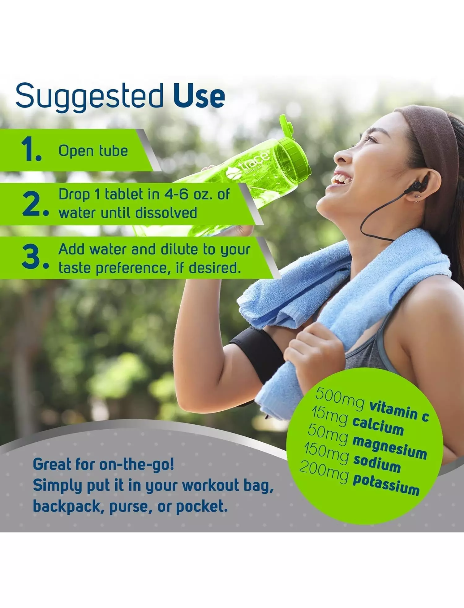 Відкрийте контейнер і опустіть одну таблетку у 110–180 мл води. Дочекайтеся повного розчинення. За бажанням можна додати більше води та відрегулювати смак напою на власний розсуд.