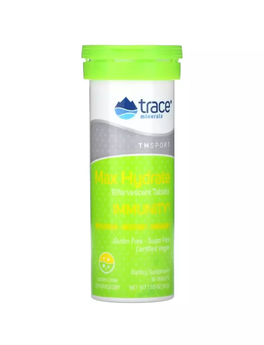 Trace Minerals Max-Hydrate Immunity / Електроліти для імунітету лимон-лайм 10 шипучих таблеток