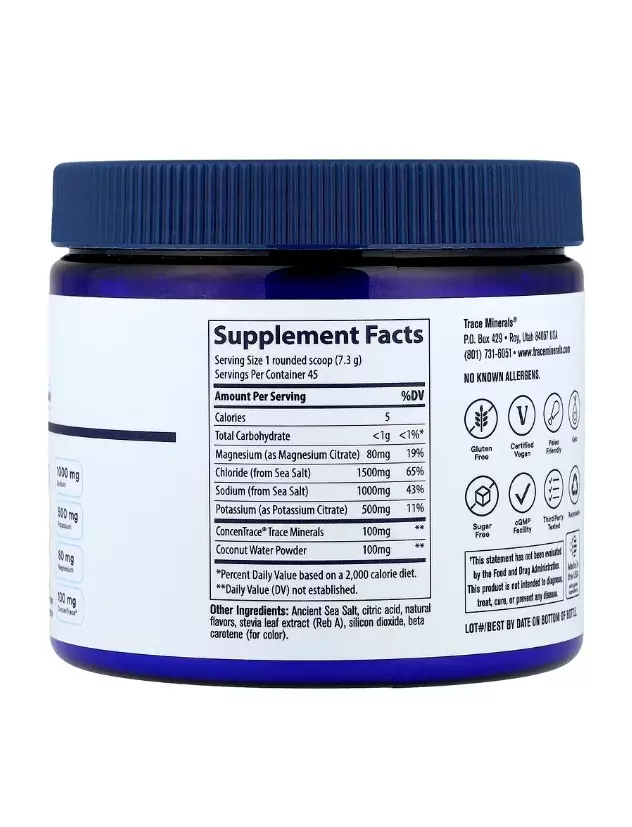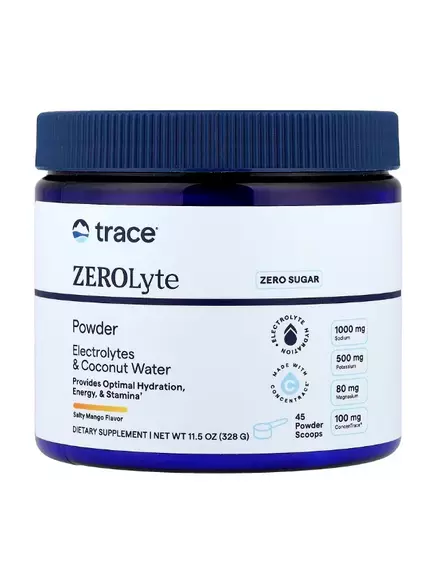 ZeroLyte — це зволожувальна суміш для приготування електролітного напою, призначена для відновлення рівня необхідних електролітів, загублених під час фізичних вправ та інших повсякденних занять, щоб підтримувати організм зволоженим і повної енергії. ZEROLyte підтримує нормальну роботу нервів і м'язів і містить високоякісні інгредієнти, зокрема довгу морську сіль, кокосову воду, калій і магній. Крім того, він містить комплекс мікроелементів ConcenTrace®, який забезпечує щоденний раціон, необхідний для поліпшення життя.