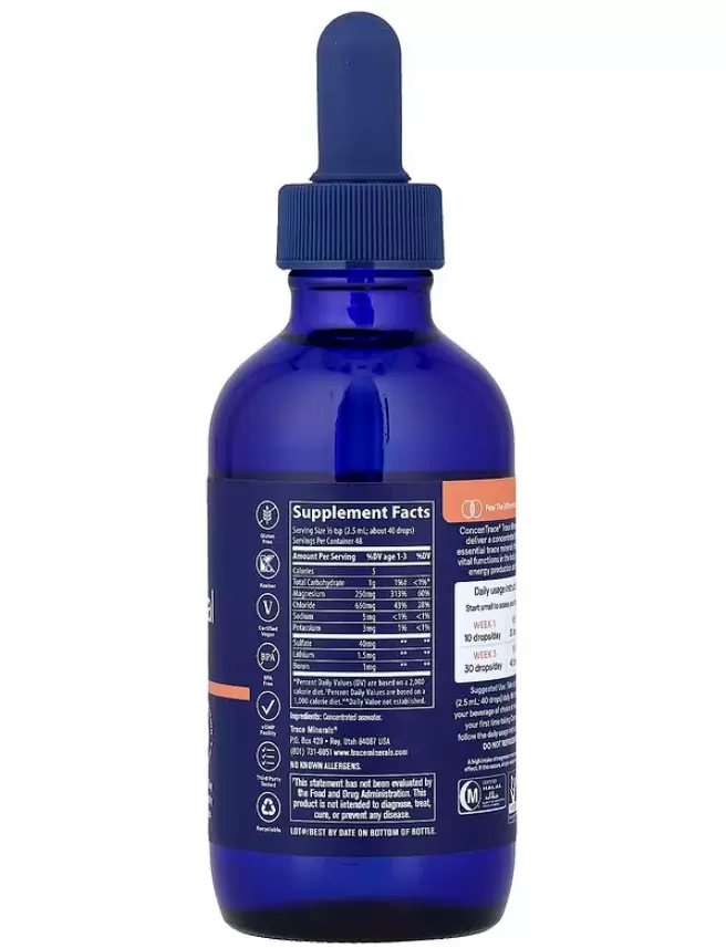 Краплі ConcenTrace® Trace Mineral Drops – це найпопулярніша в Америці добавка з мікроелементами, яка містить потужні, повністю натуральні мікроелементи, що регулюють pH. Видобуті з вод Великого Солоного озера в штаті Юта, вони містять повний спектр природних іонних мікроелементів.